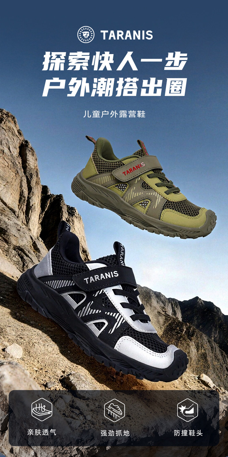 泰兰尼斯儿童夏季单网透气运动鞋男女童时尚户外露营鞋休闲登山鞋T01D6A9200