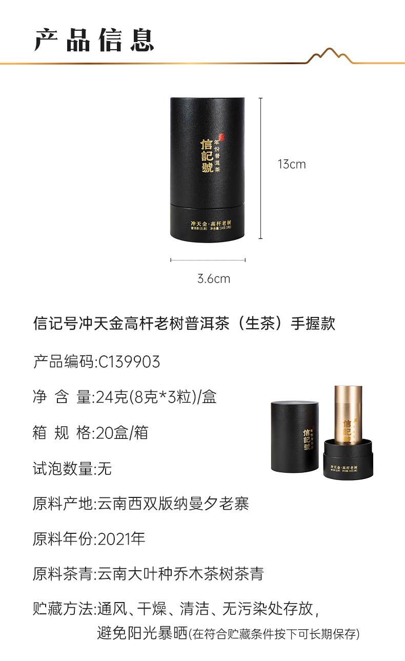 八马信记号 | 普洱生茶 信记号冲天金高杆老树普洱茶手握版(24g)C139903