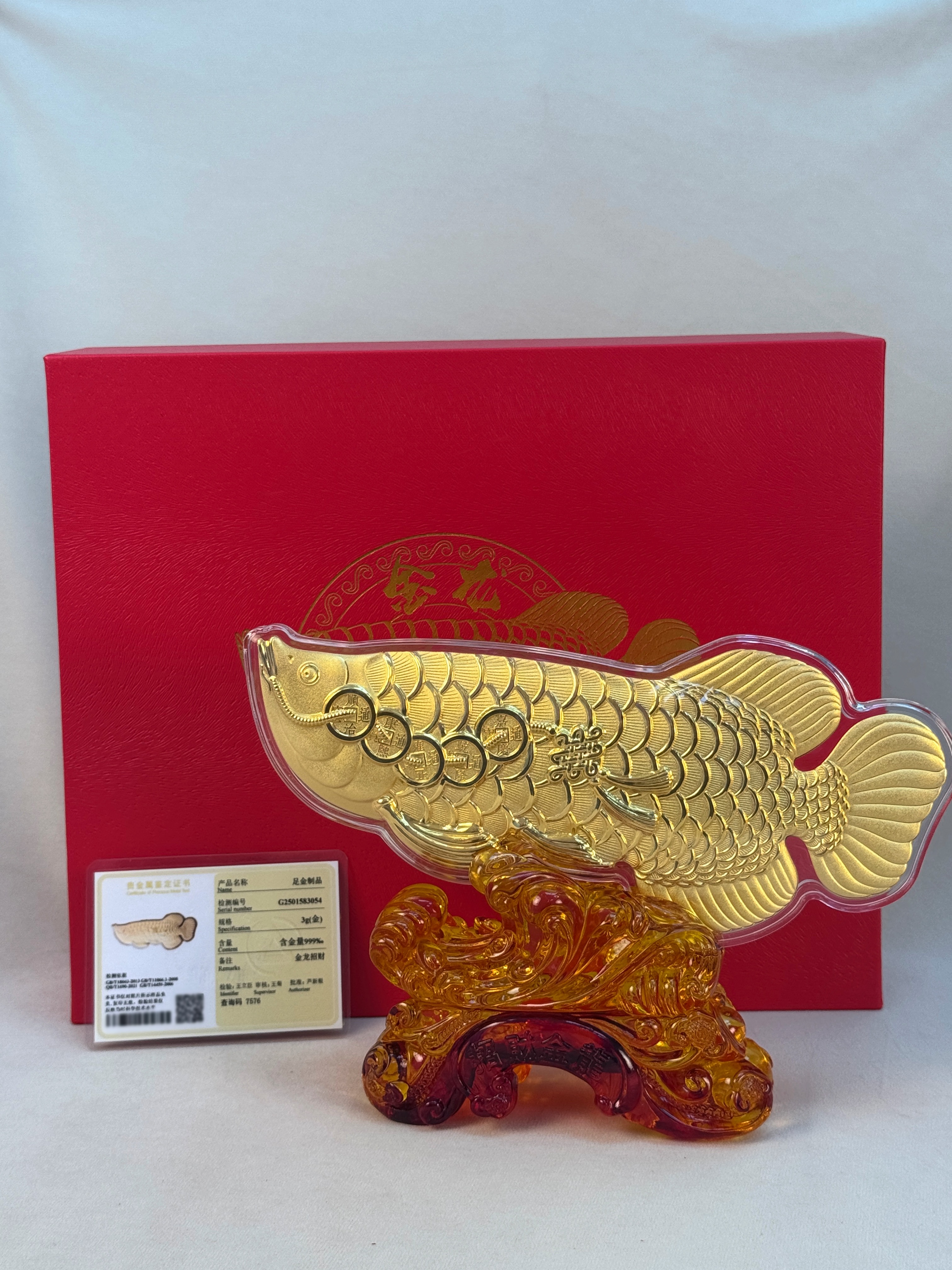 【现货】足金999聚财足金龙鱼办公室摆件乔迁开业之喜送长辈领导【金重约3g】【一物一证书】