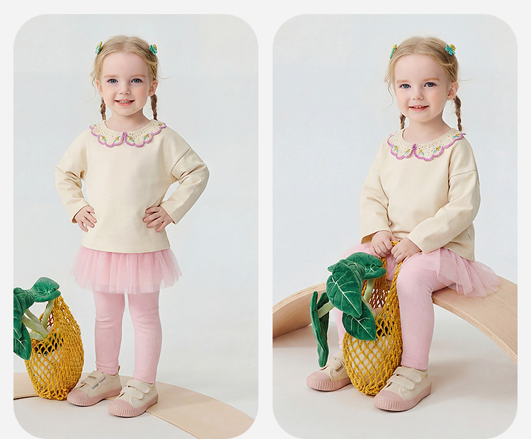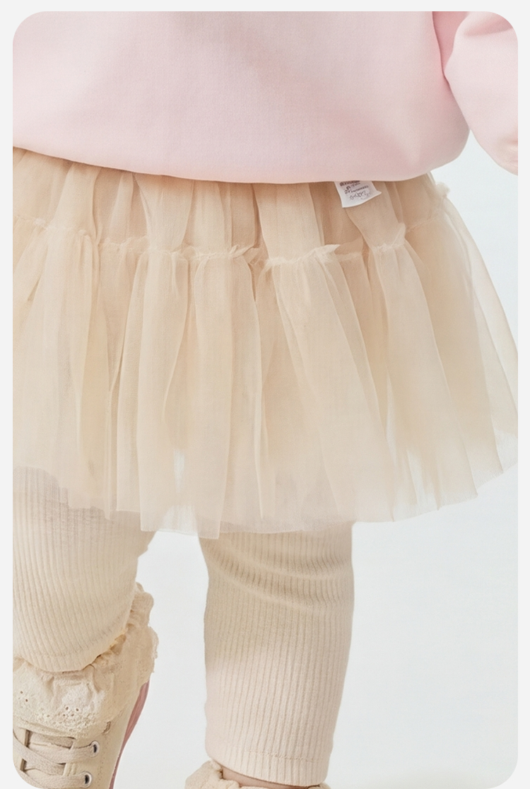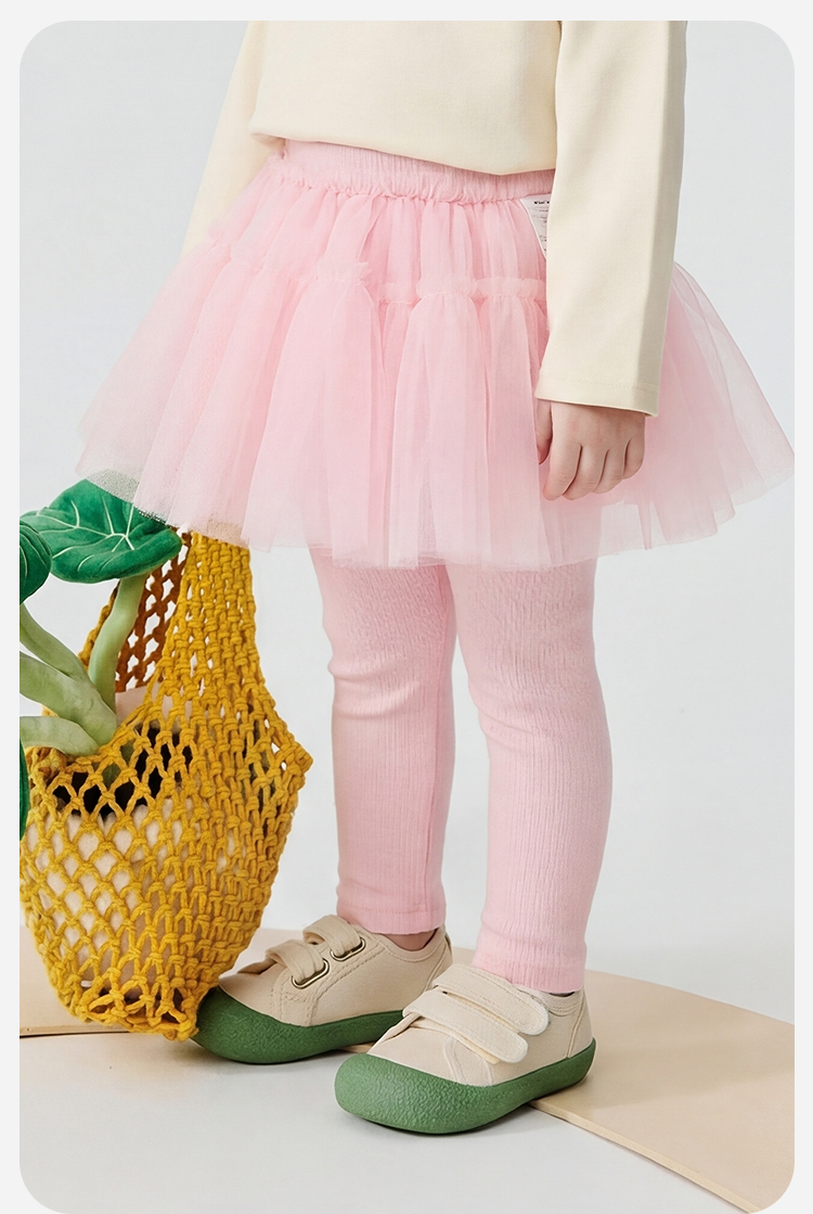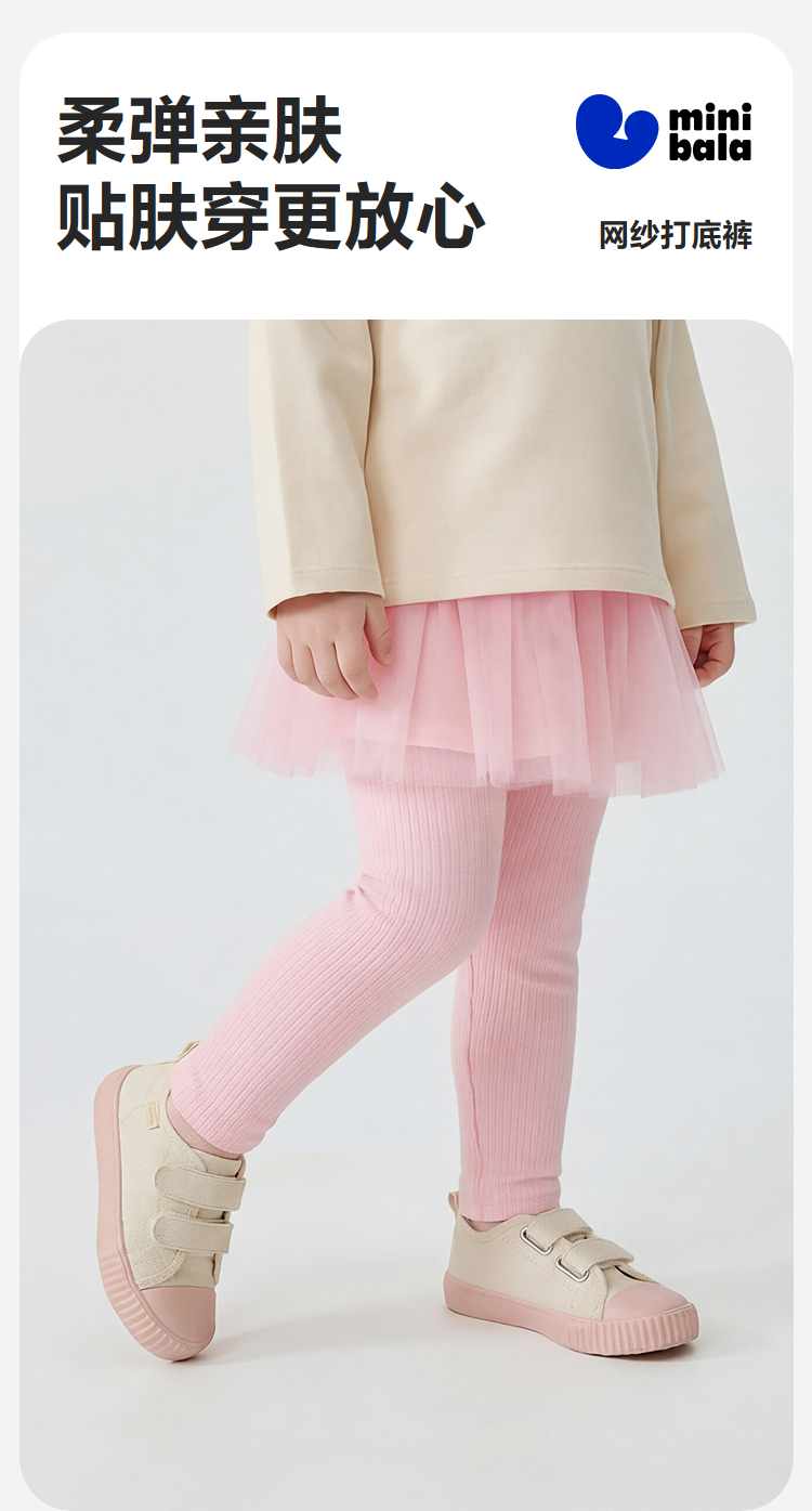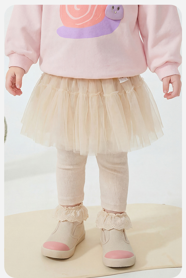 迷你巴拉巴拉女童宝宝裤子春新品棉柔亲肤拼接蕾丝裙摆甜美打底裤★