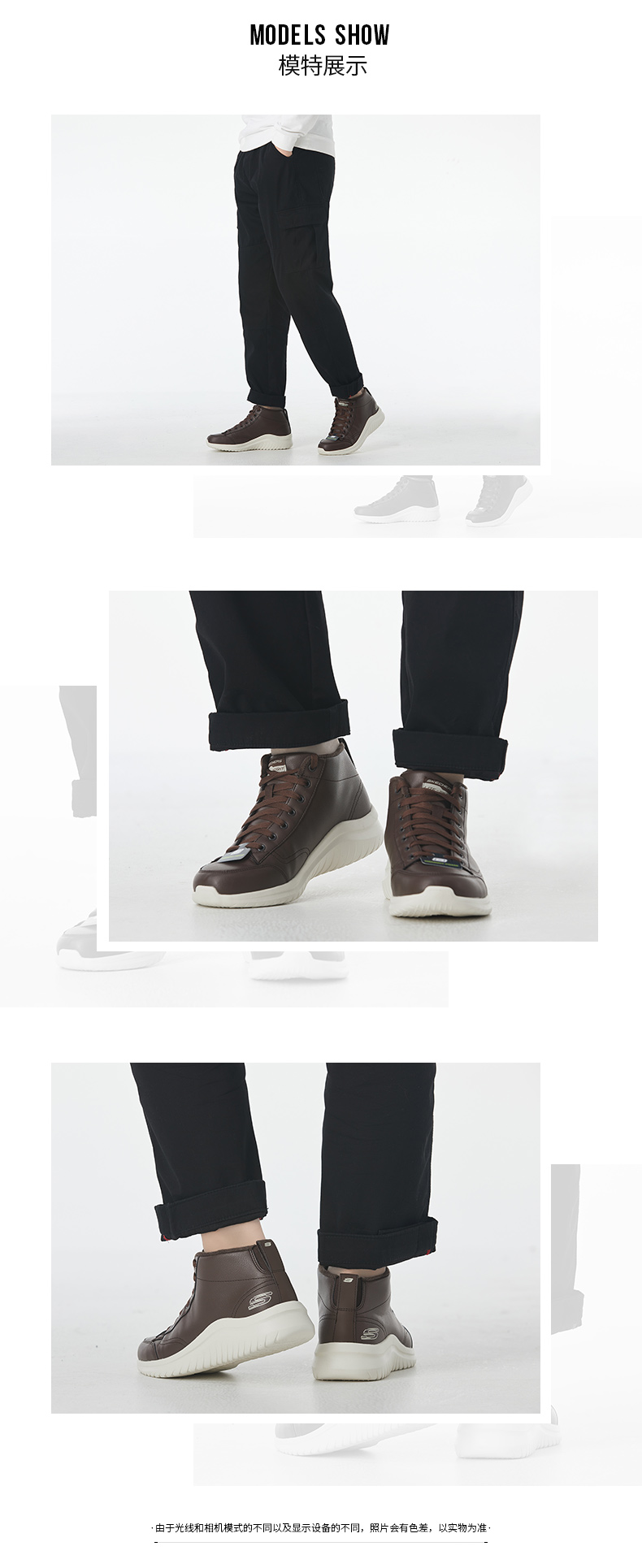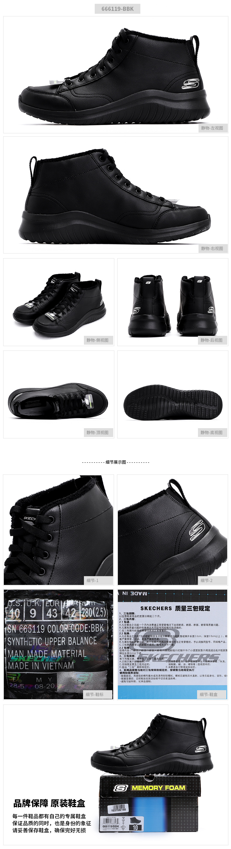 Skechers斯凯奇官方旗舰男鞋 2022秋冬新款高帮皮革保暖减震轻便休闲鞋加绒短靴棉鞋 666119