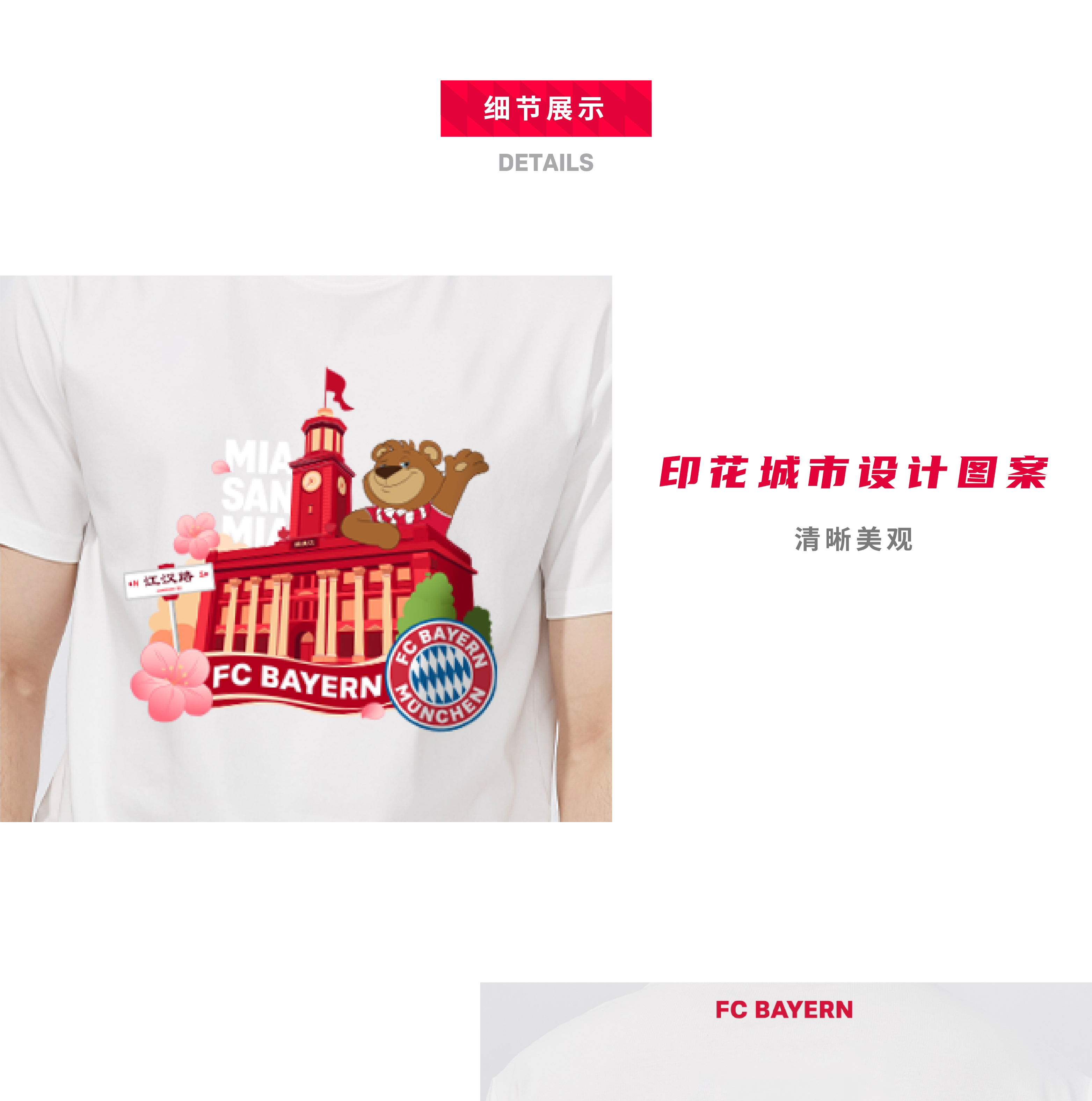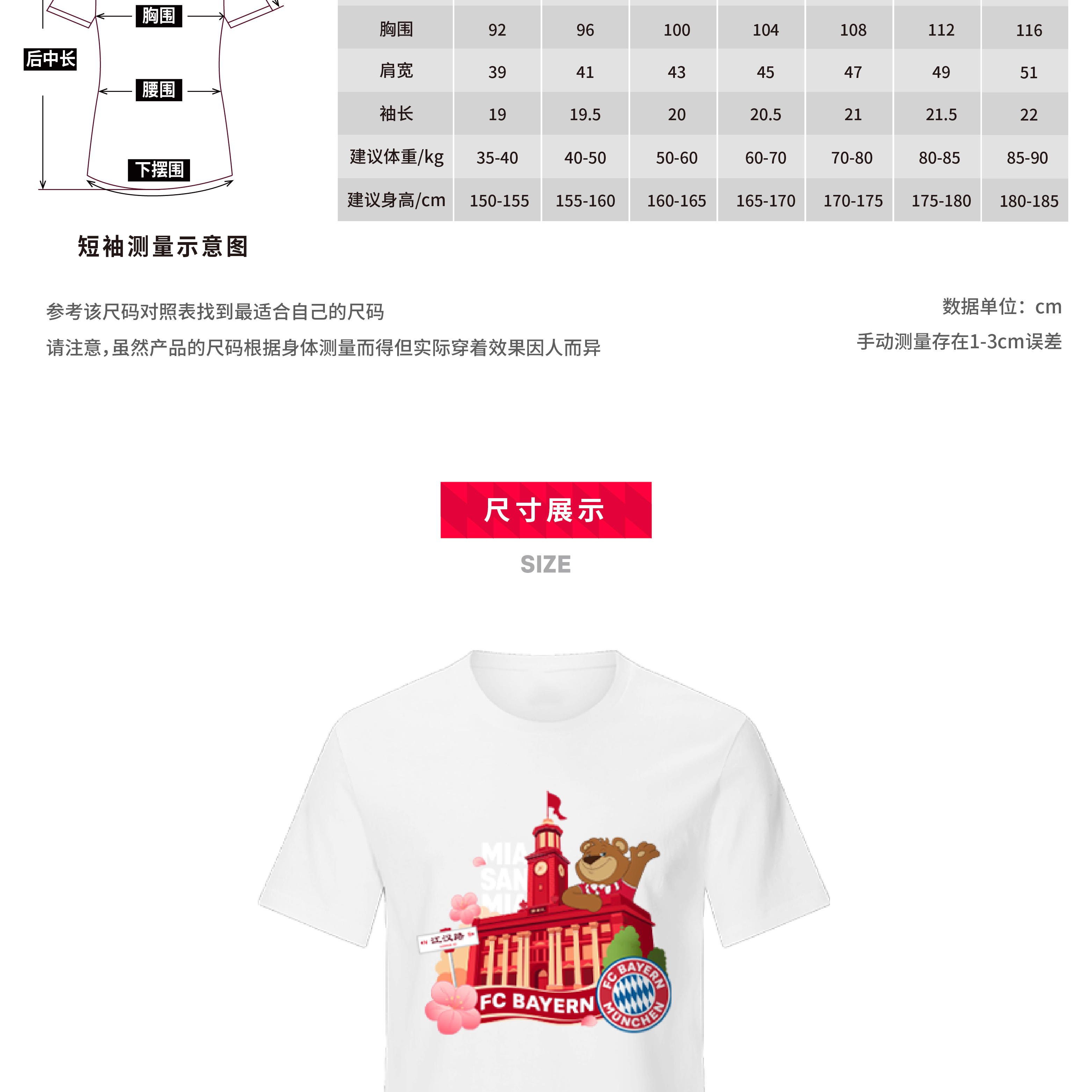【官方正版】拜仁慕尼黑足球俱乐部|武汉城市印花白色T恤纪念短袖