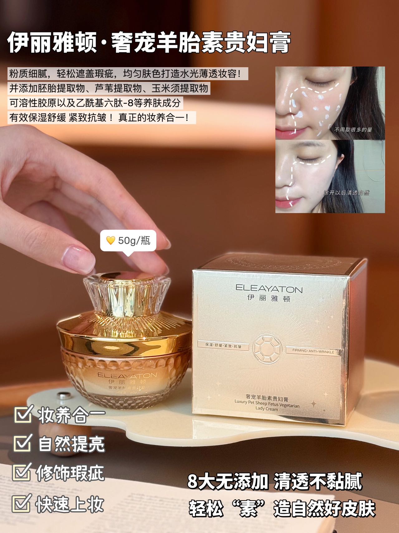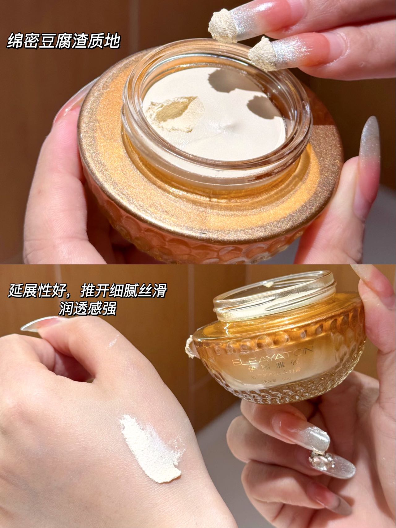 舒缓·保湿·紧致·抗皱 敏肌适用绵密豆腐渣质地,柔润丝滑伴随着优越的延展性轻松推开贴合面部肌肤遮盖瑕疵、均匀肤色带来水光薄透妆容~
