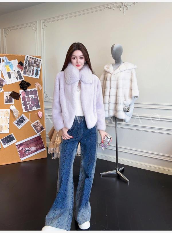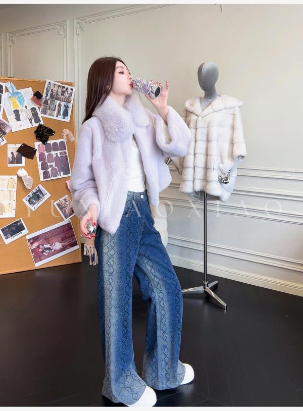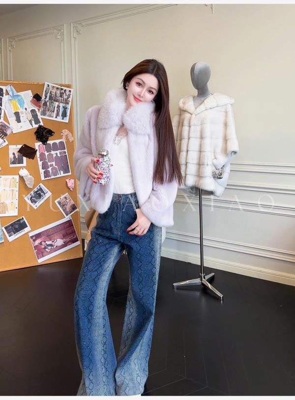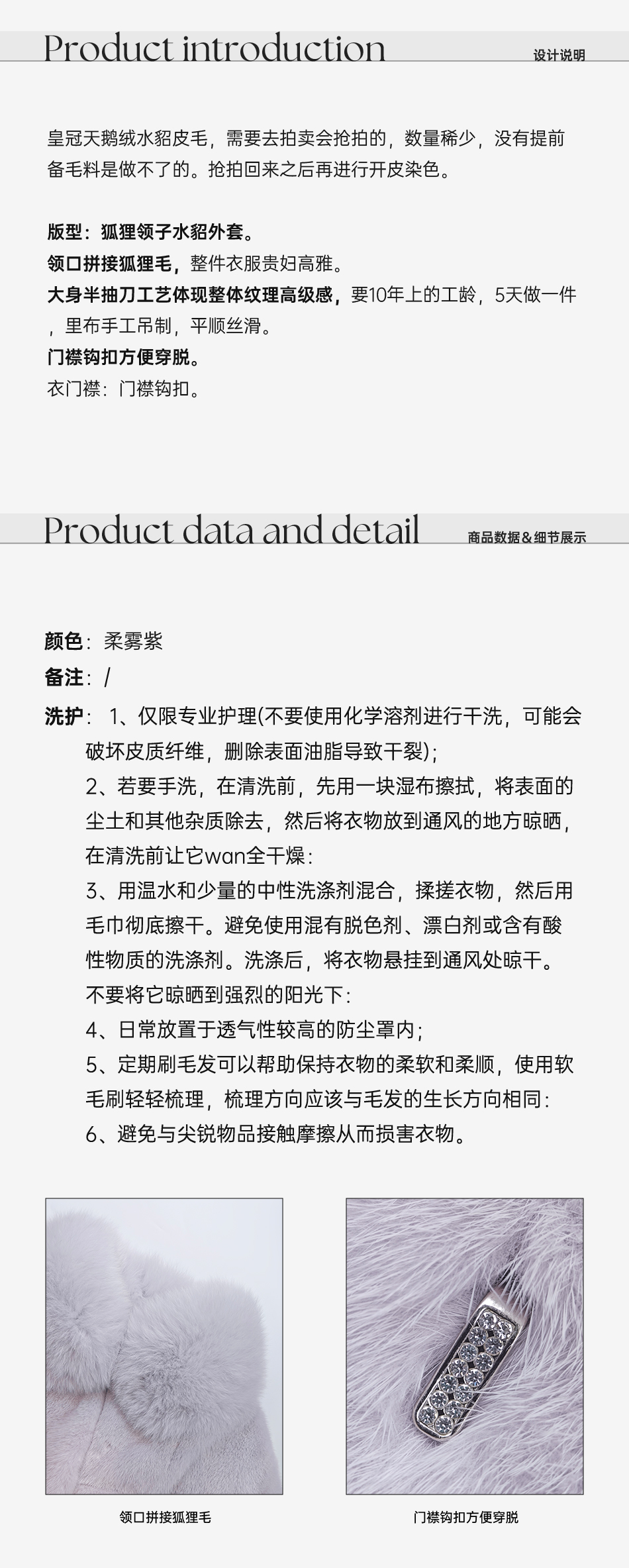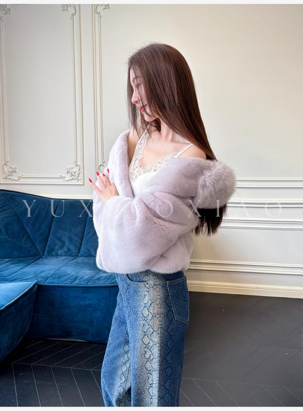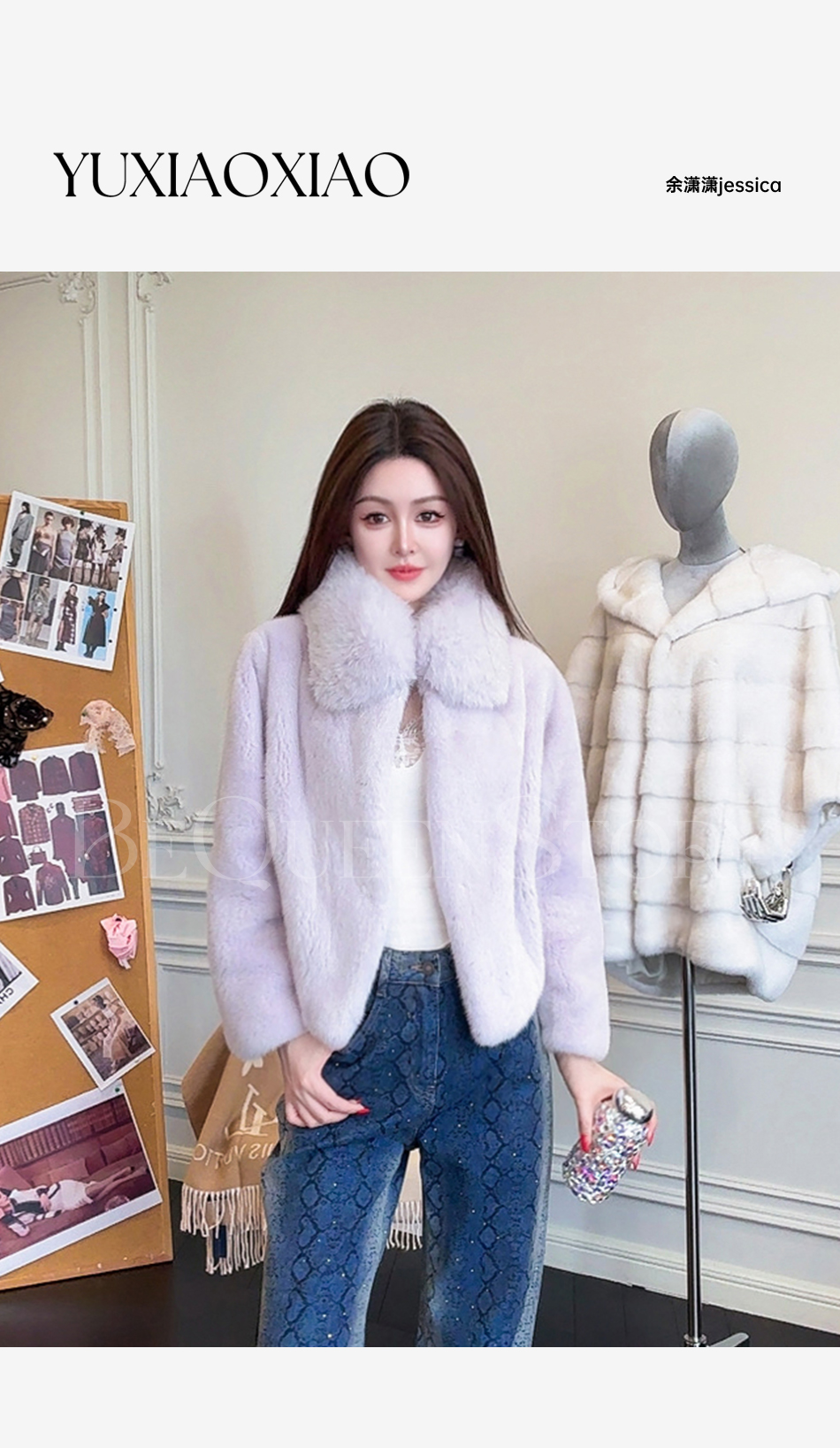 余潇潇【维多利亚女王】贵妇高雅水貂毛领口拼接白狐狸毛皮草外套