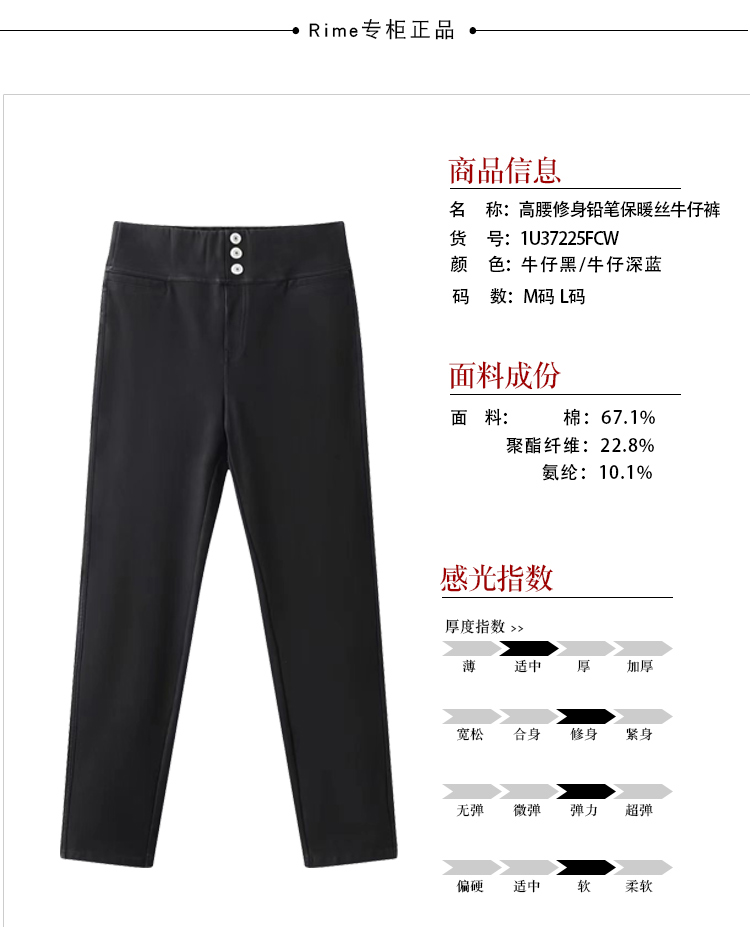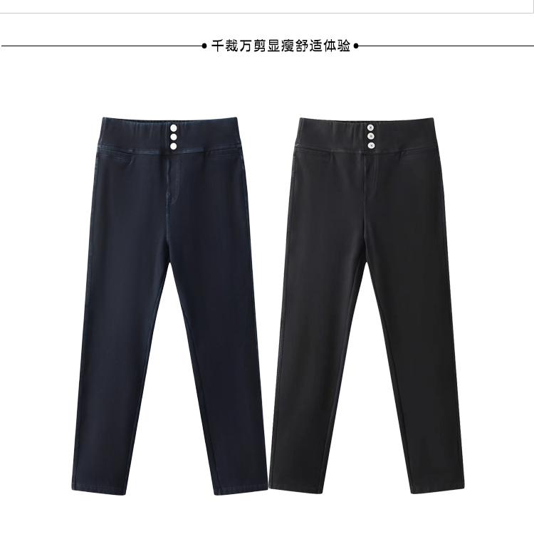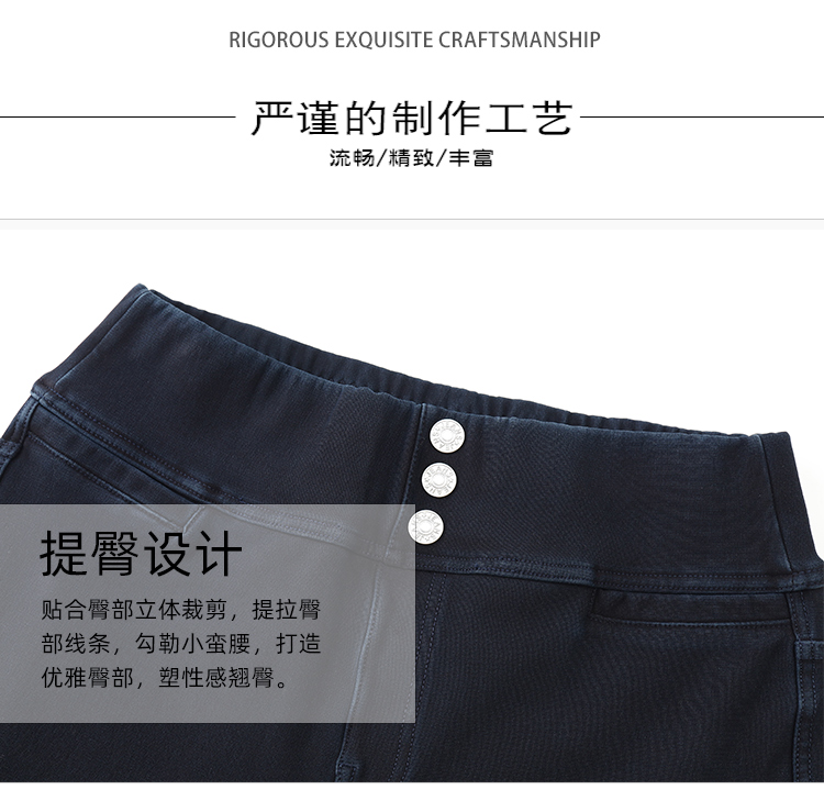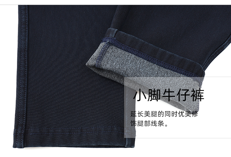 时尚高腰修身铅笔保暖丝牛仔裤37225