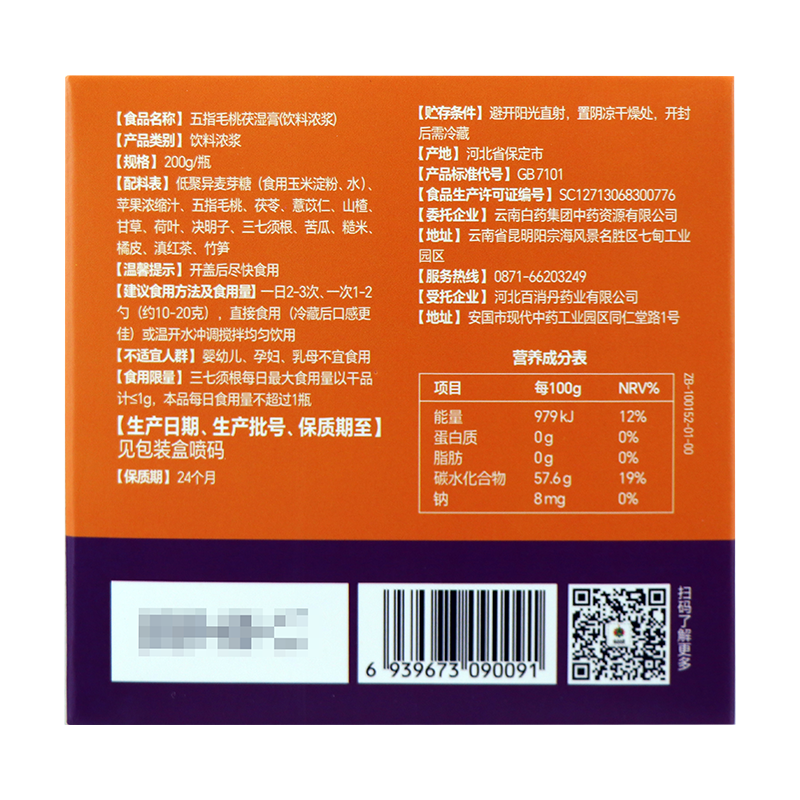 【官方正品】云南白药千草美姿五指毛桃茯湿膏瓶装茯苓薏仁山楂荷叶浓缩膏