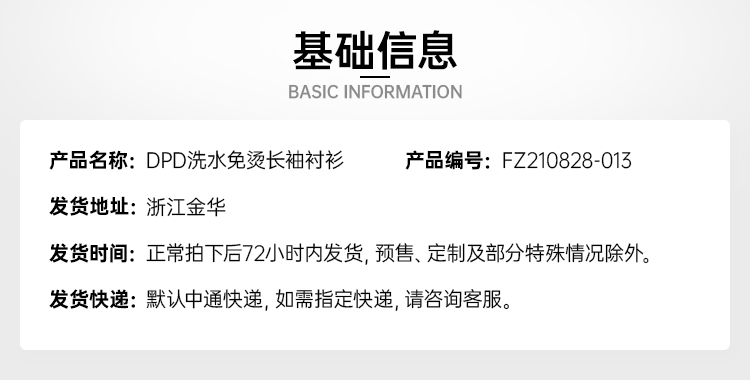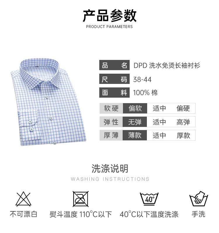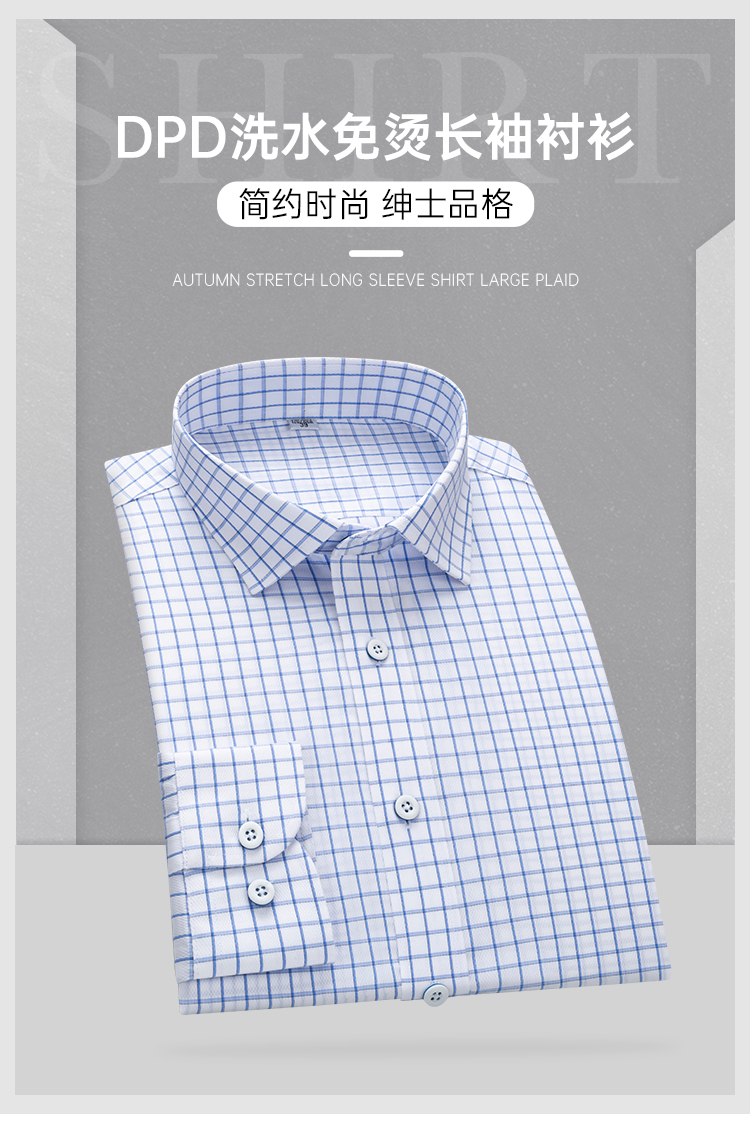 【DPD洗水免烫长袖衬衫】免烫长袖衬衫 男士通勤长衬 修身耐磨衬衣