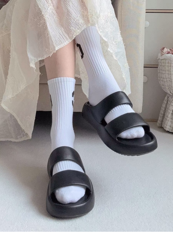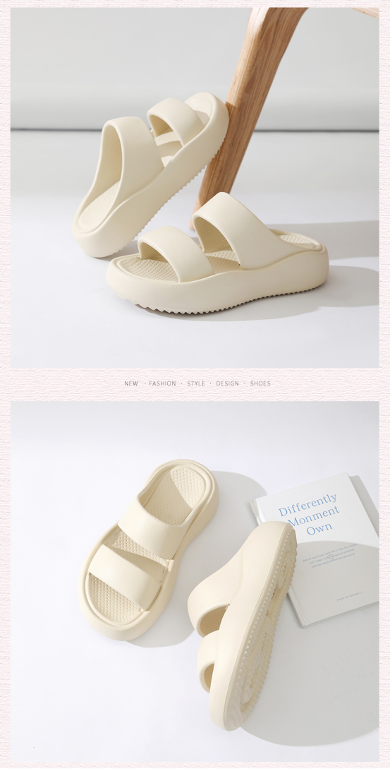 宽头设计,贴合足部线条,不紧绷宽松舒适 优质EVA面料,穿着舒适不磨脚。 鞋底凹凸纹理 抓地力更强防止摔倒 厚底造型设计,拉长腿部线条 一体成型的结构,穿脱省时又方便。