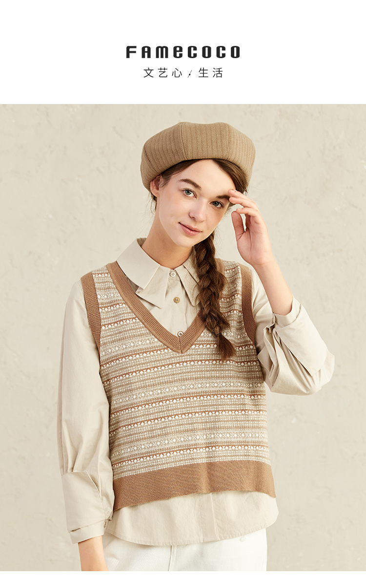 famecoco范可儿小香风女士马甲春日系叠穿针织背心F221CA010