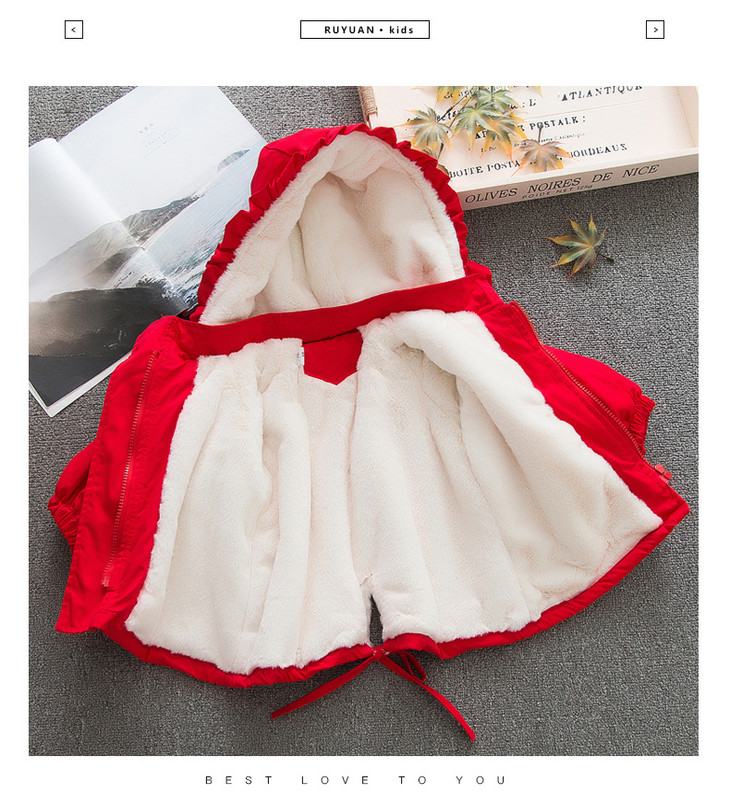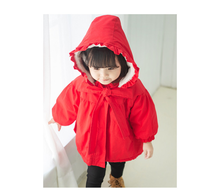 【童装】冬季新品 圣诞帽外套 韩版童装女童蝴蝶结加绒女宝宝上衣