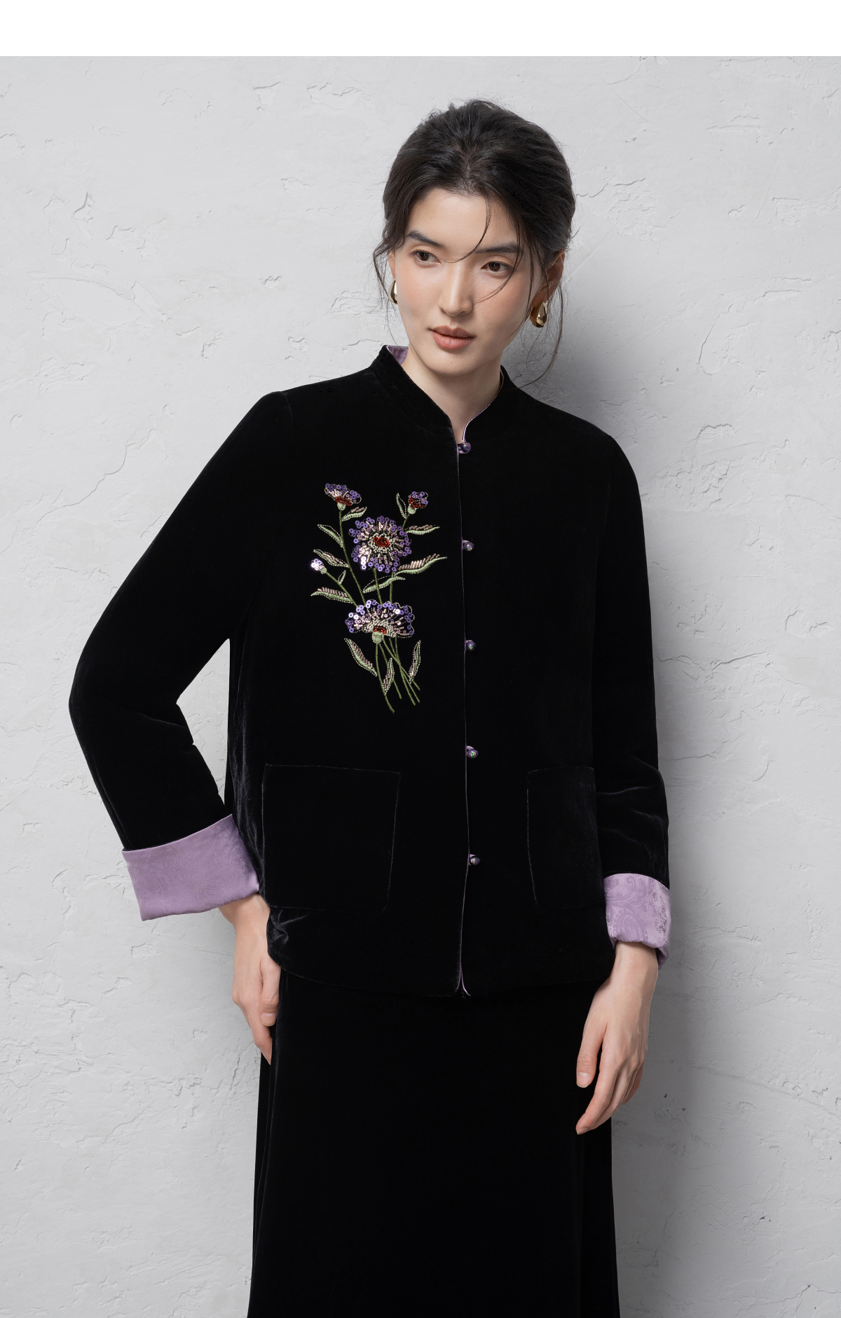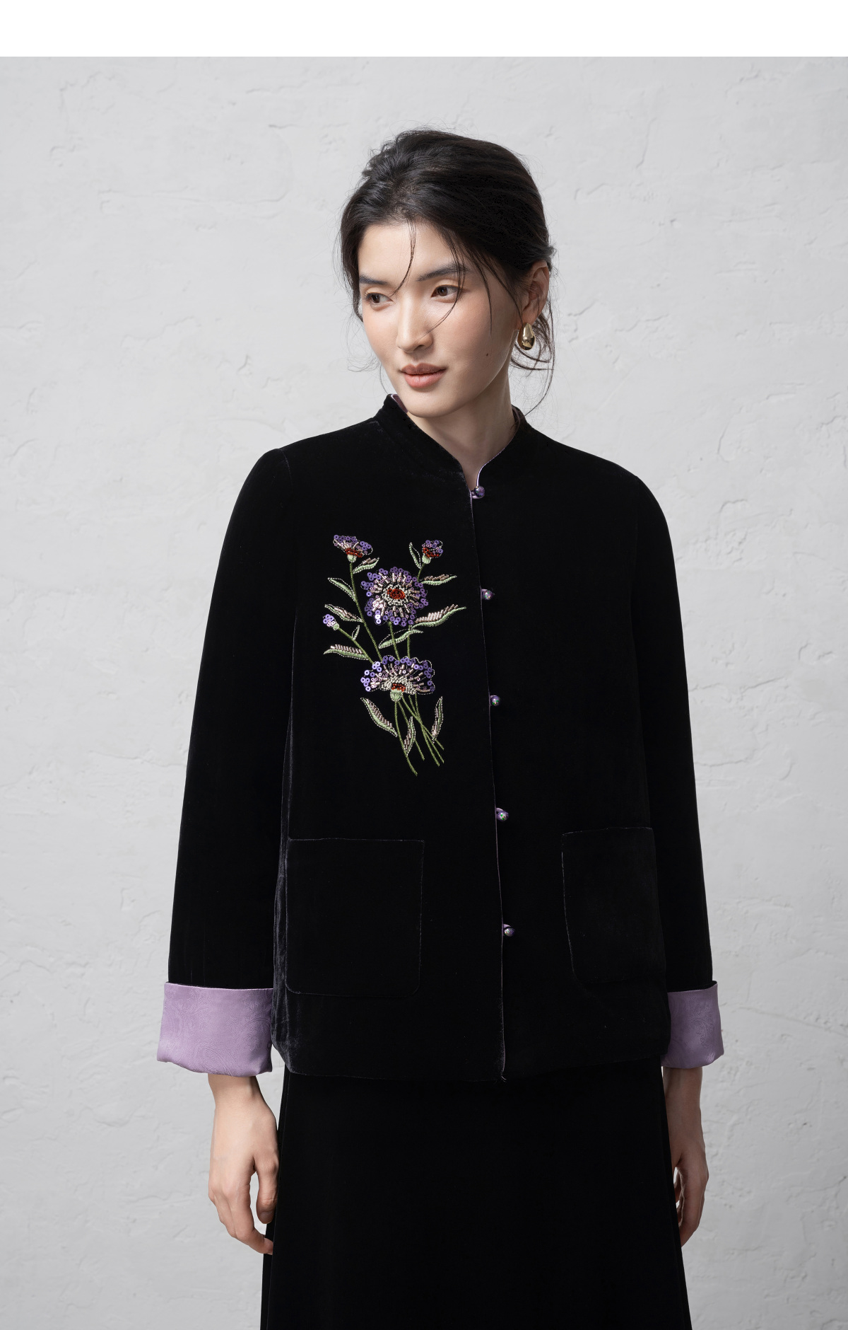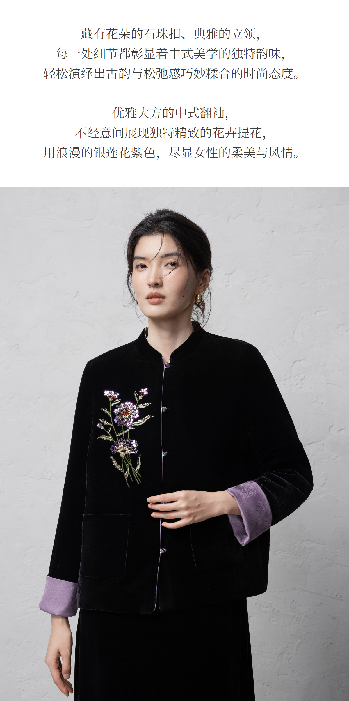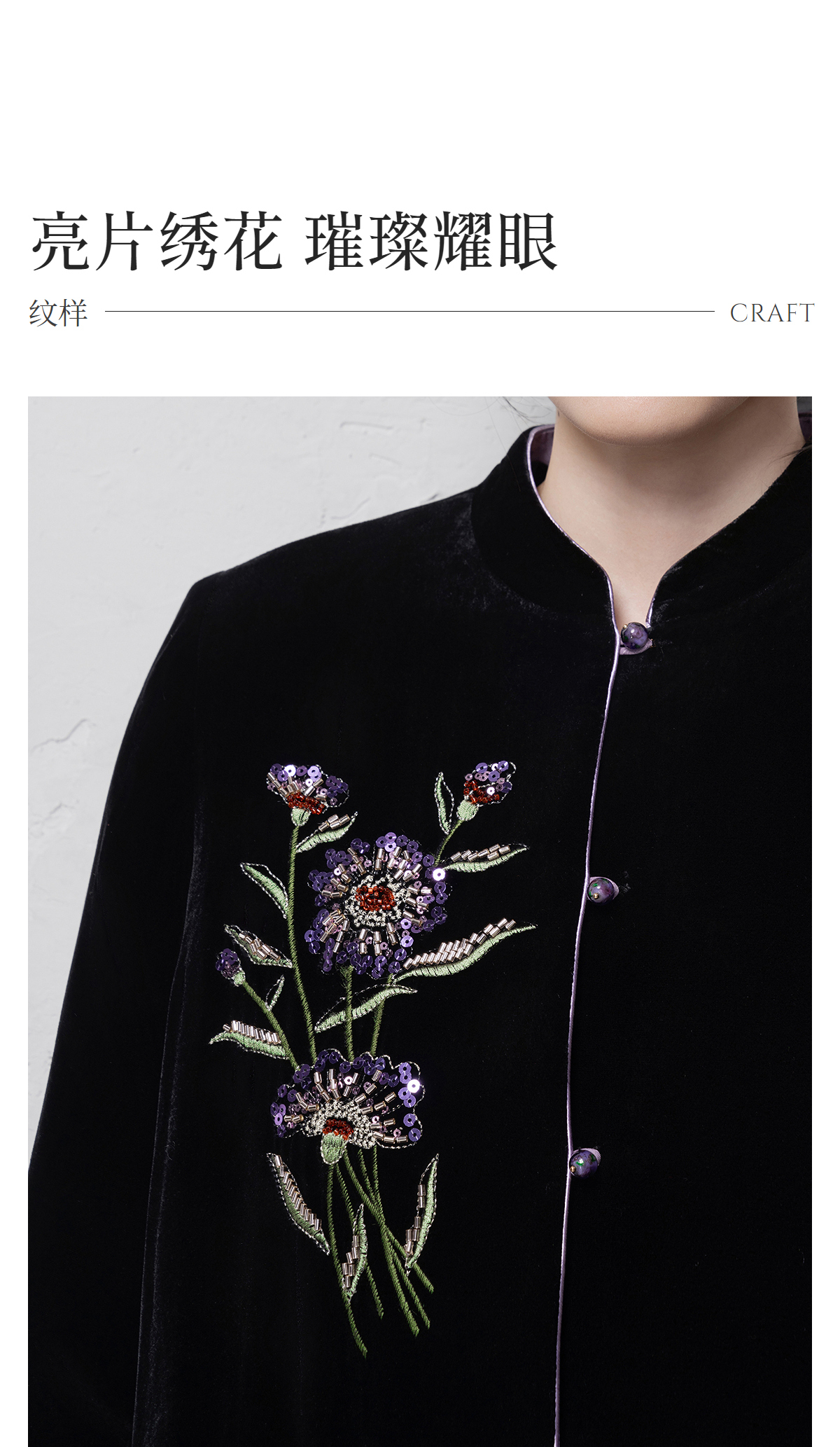 【林栖设计小店】真丝丝绒绵羊毛棉衣2025秋冬新款珠片绣花国风优雅外套女1954192