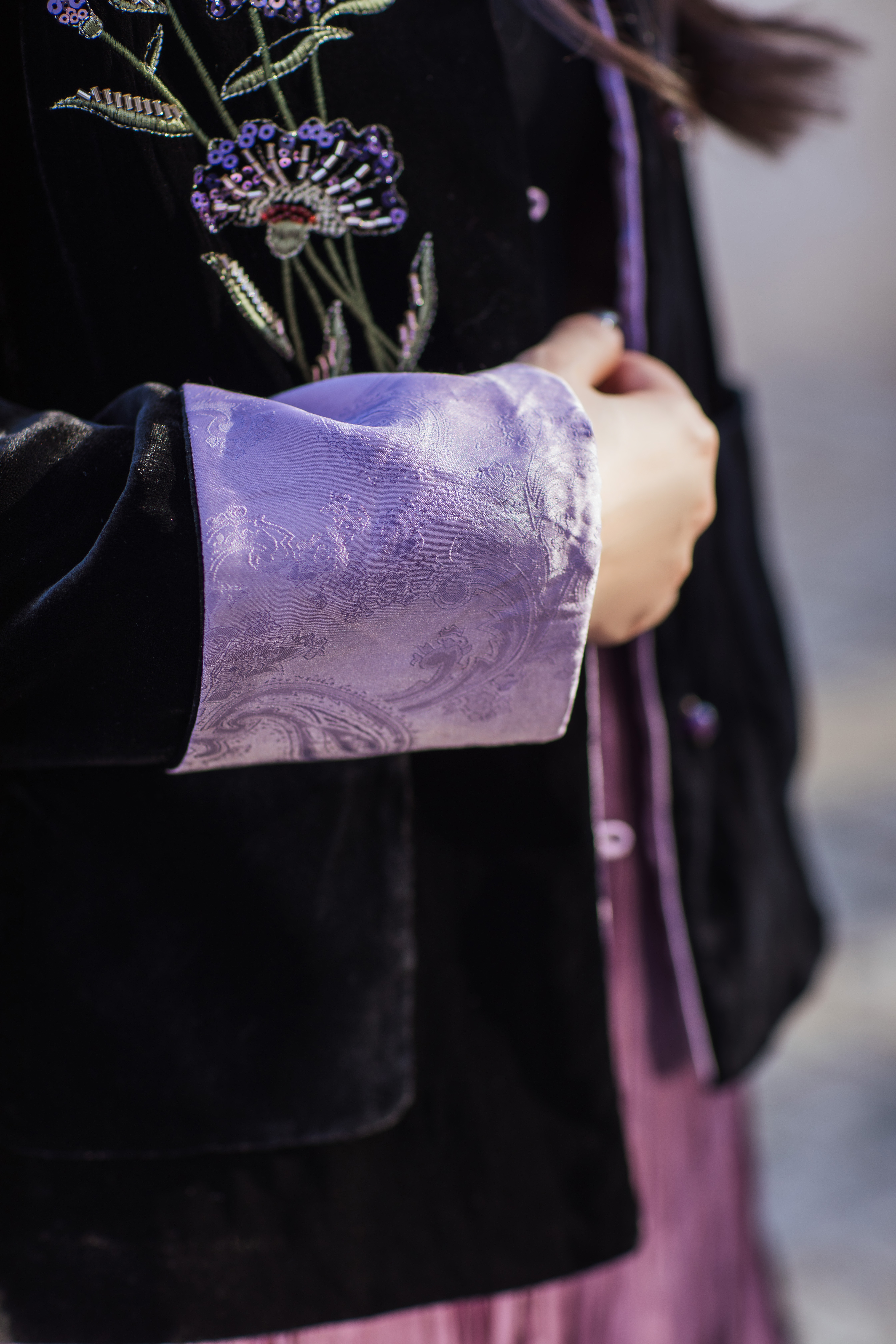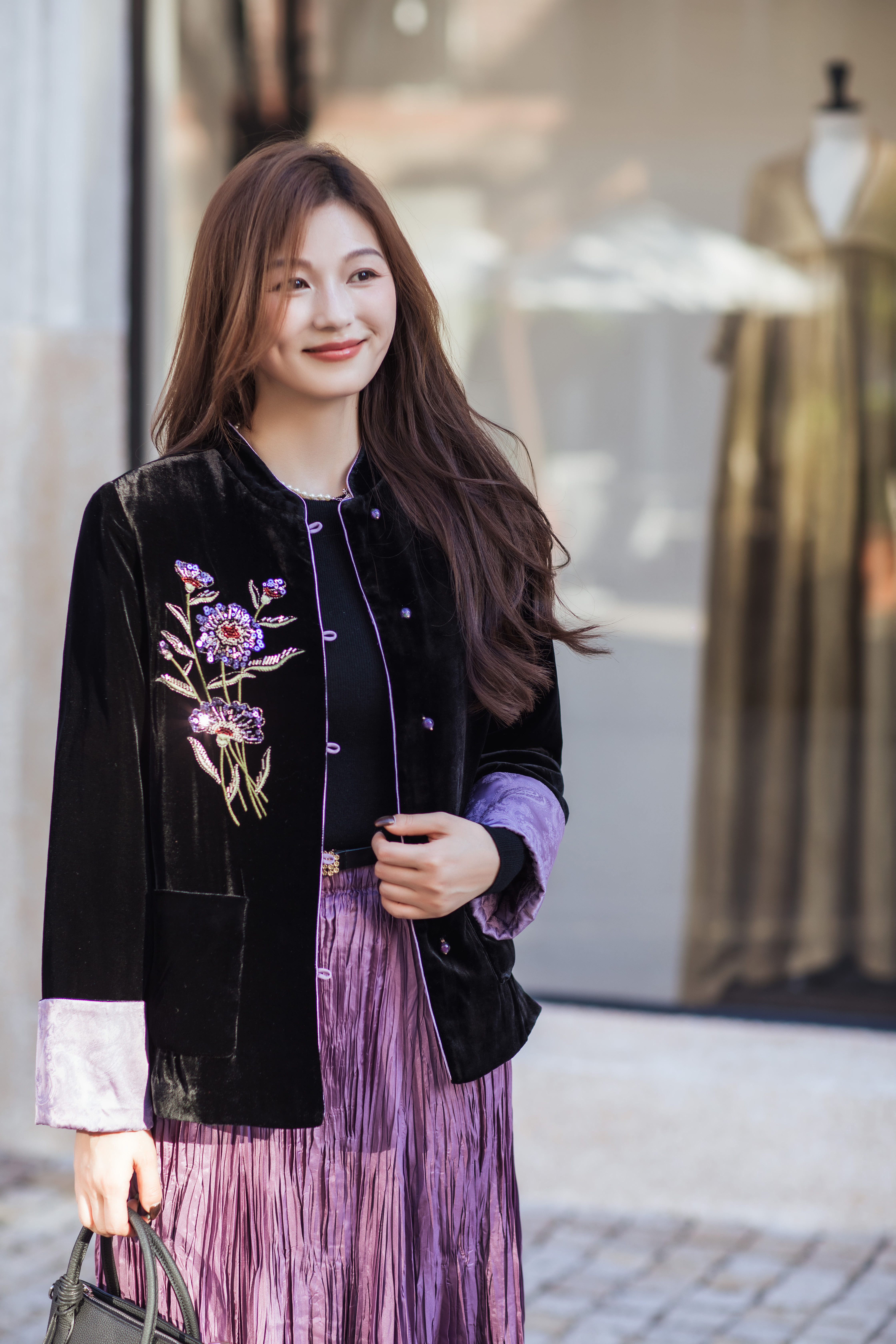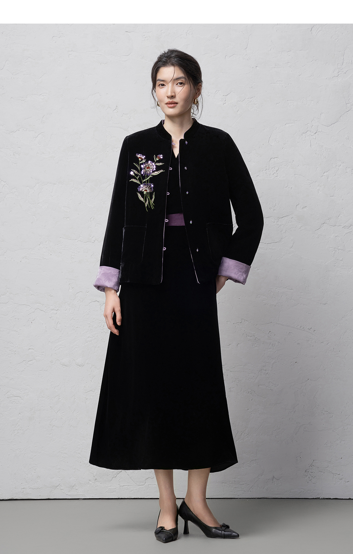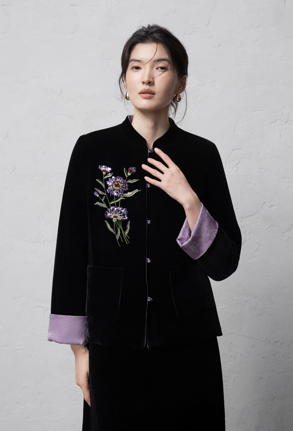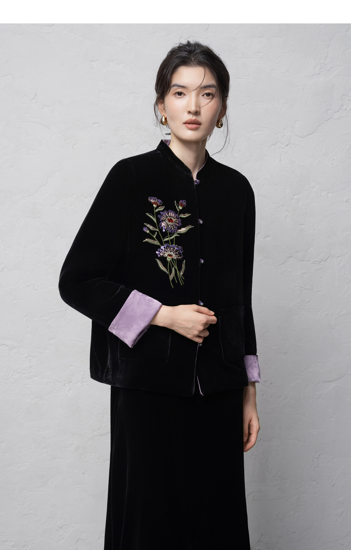 【林栖设计小店】真丝丝绒绵羊毛棉衣2025秋冬新款珠片绣花国风优雅外套女1954192