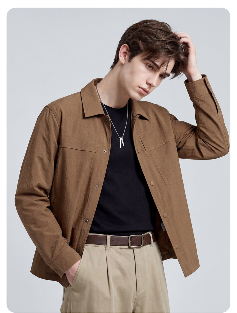 【易打理】圣得西简约休闲通勤夹克男款2026新款潮流翻领工装外套