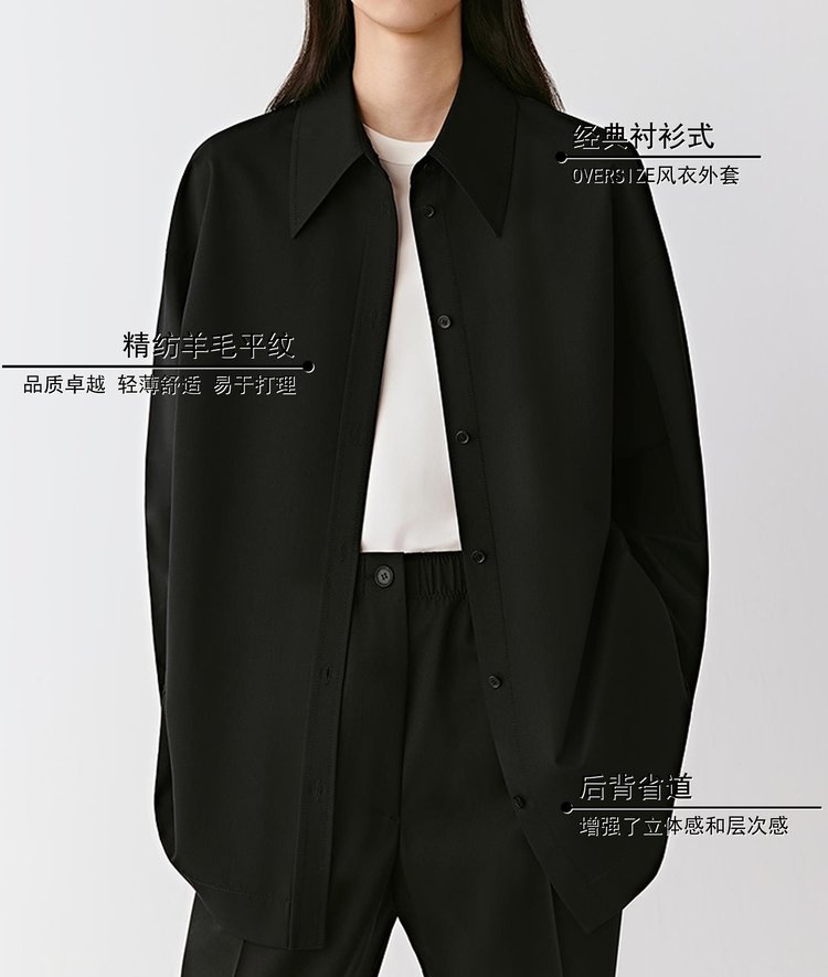 小禾同款精纺羊毛衬衫式风衣外套