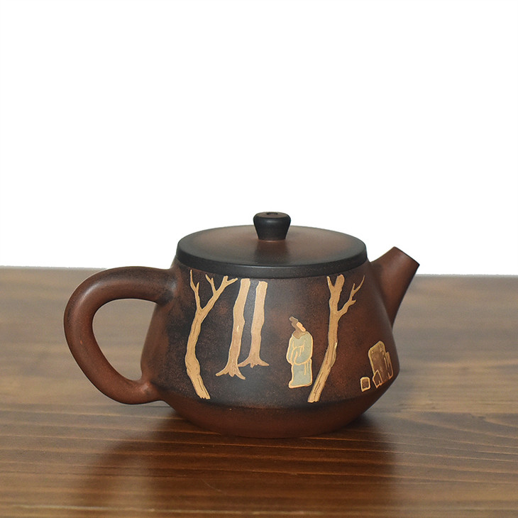 三金,本名李鑫,启正陶社社员,2010年在朝阳楼跟随半根先生学习制壶。三金制陶随性而发,平淡天真,器型古朴,装饰淡雅,常作闲人、傻鱼、呆僧图饰······生趣盎然。制陶应是玩,不作高态,能让喜欢的人观之用之心生愉悦,便是乐事。虽有不足,但制陶路漫漫,坚持下去,必有所收获。