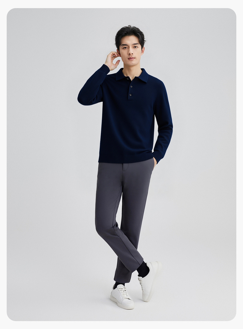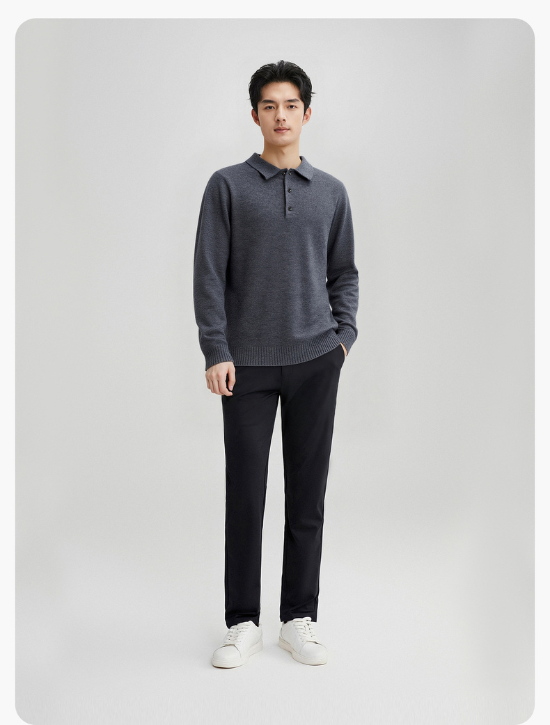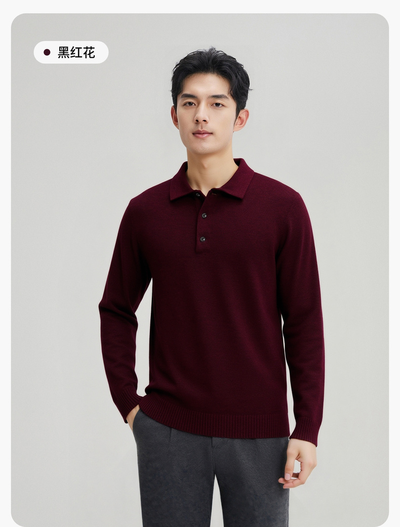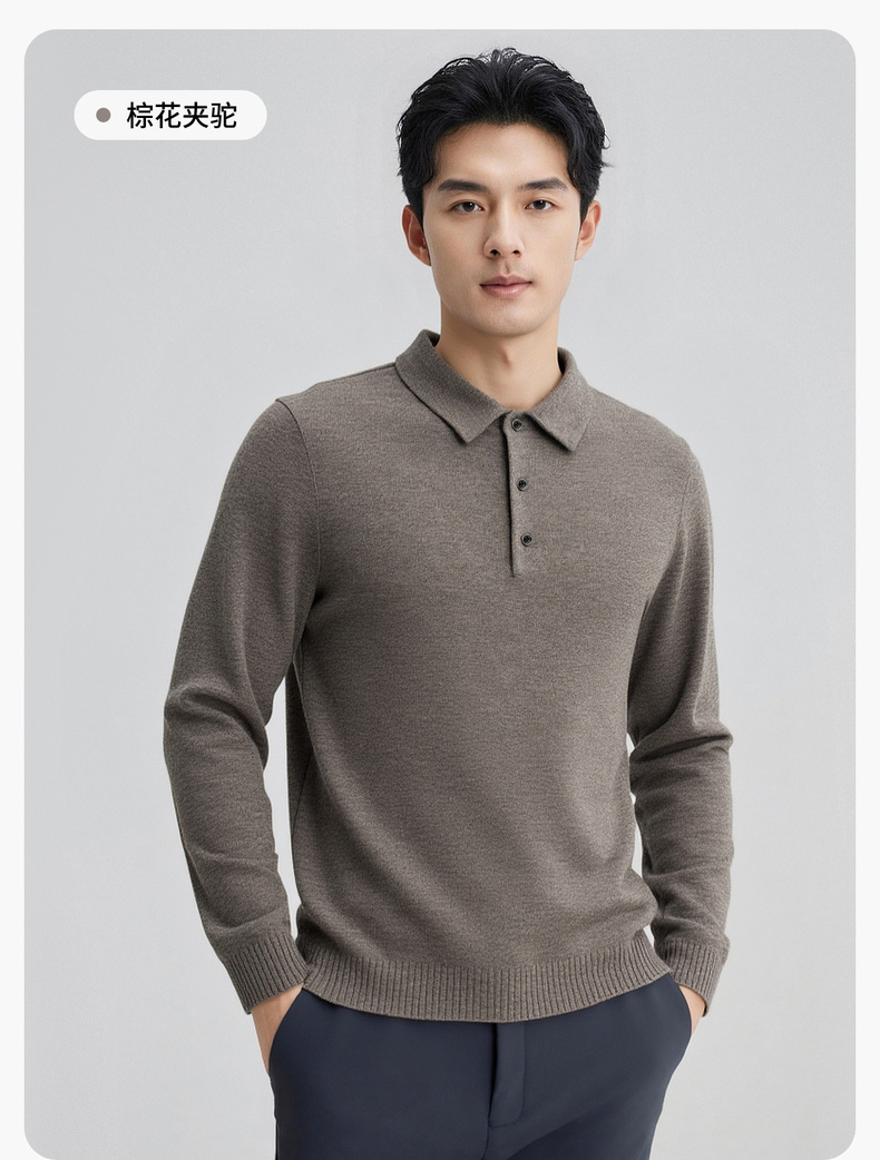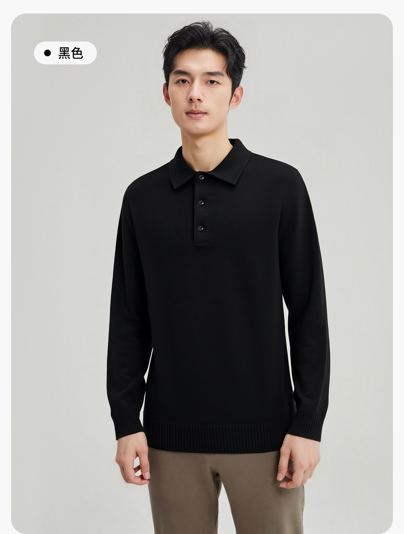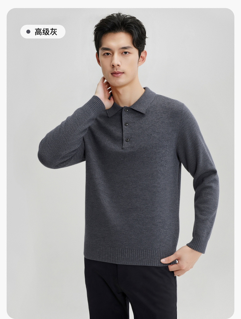 【100%绵羊毛】圣得西男士保暖polo领羊毛衫25秋新款重磅毛衣410g