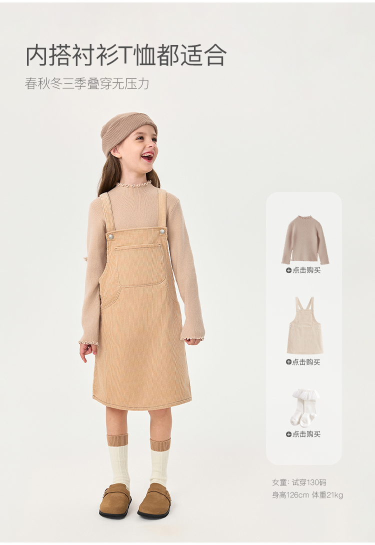马克珍妮女童复古文艺灯芯绒背带裙2025年秋装新款551669