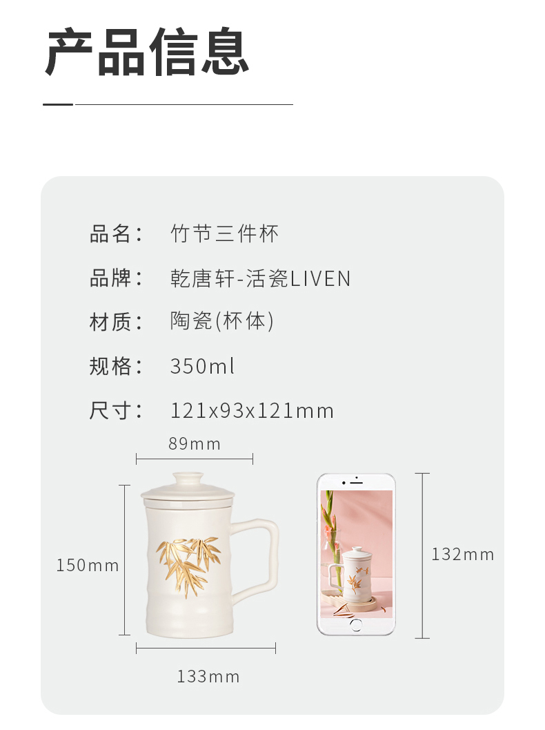 竹节三件杯(含茶漏)350ml