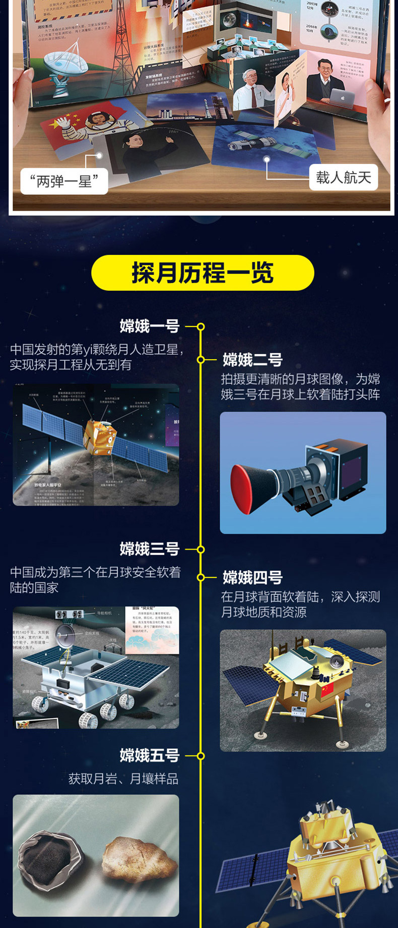 给孩子讲中国航天系列 嫦娥探月立体书+探秘火星立体书 儿童趣味科普百科翻翻书