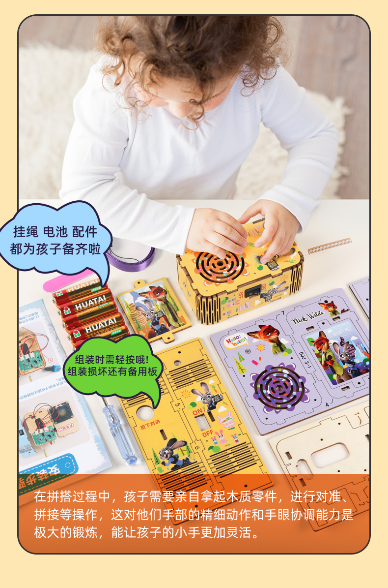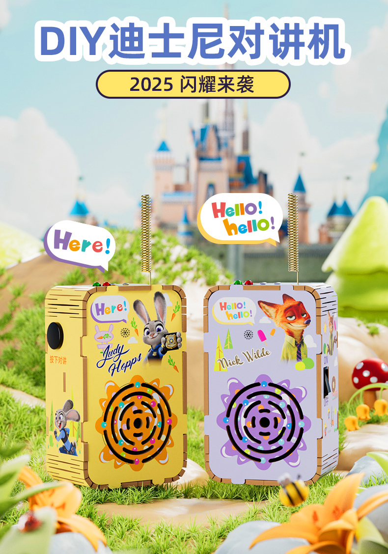 狐小科儿童diy正版迪士尼对讲机礼物科技小制作手工科学实验玩具3000米传呼