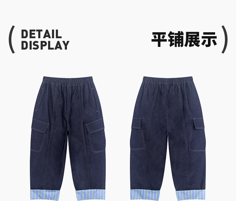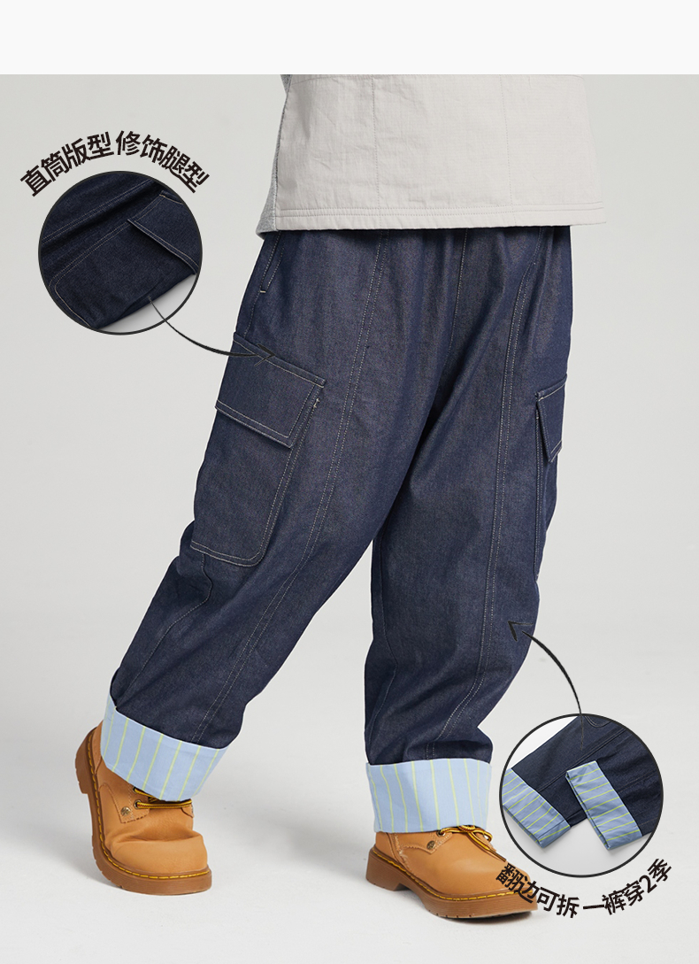 漫画家潮童装男童裤子春季新款翻边直筒工装牛仔裤儿童春装