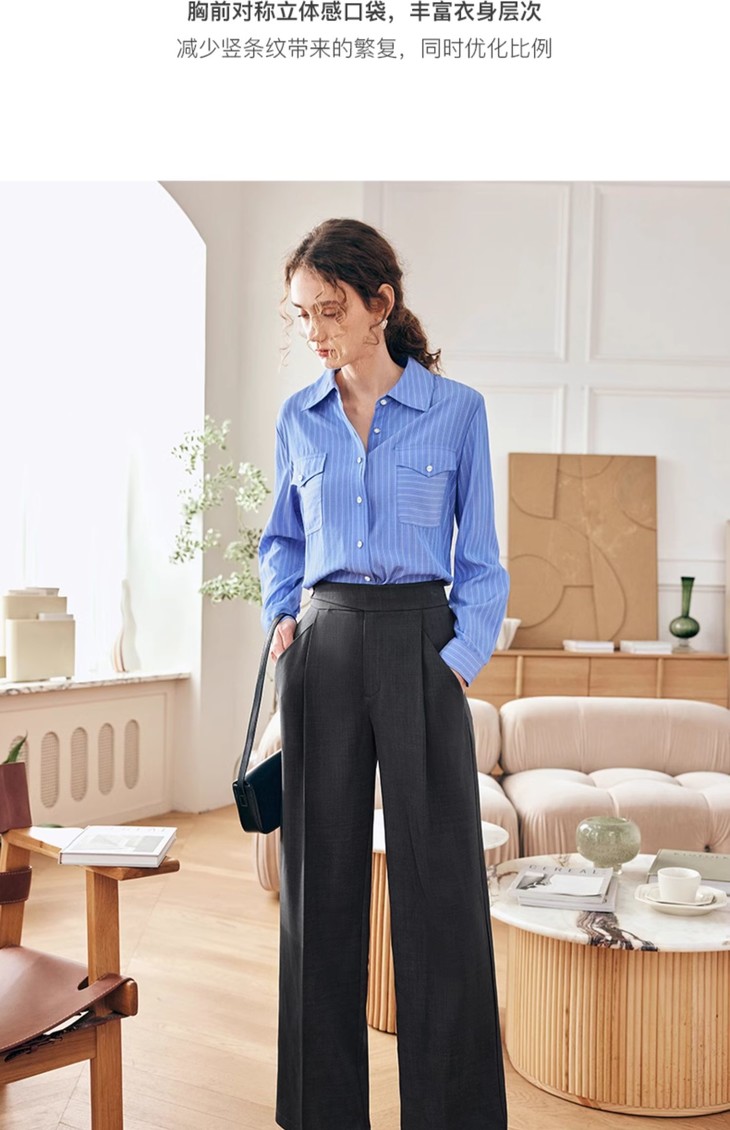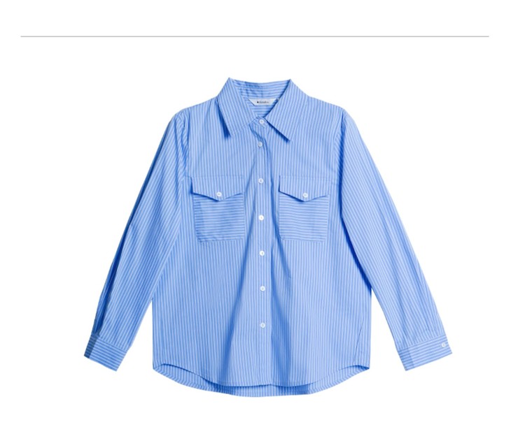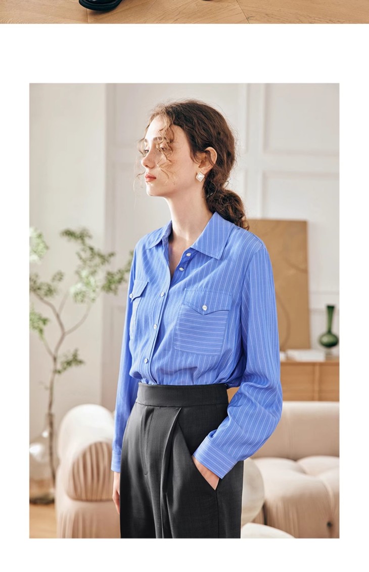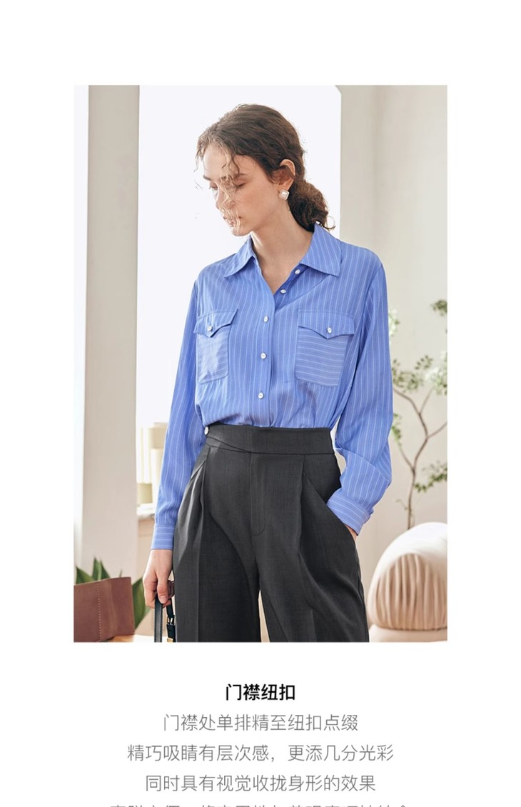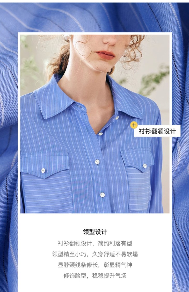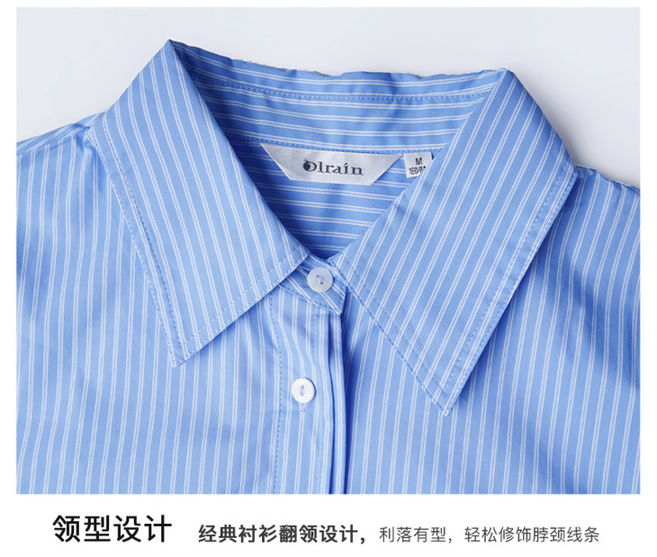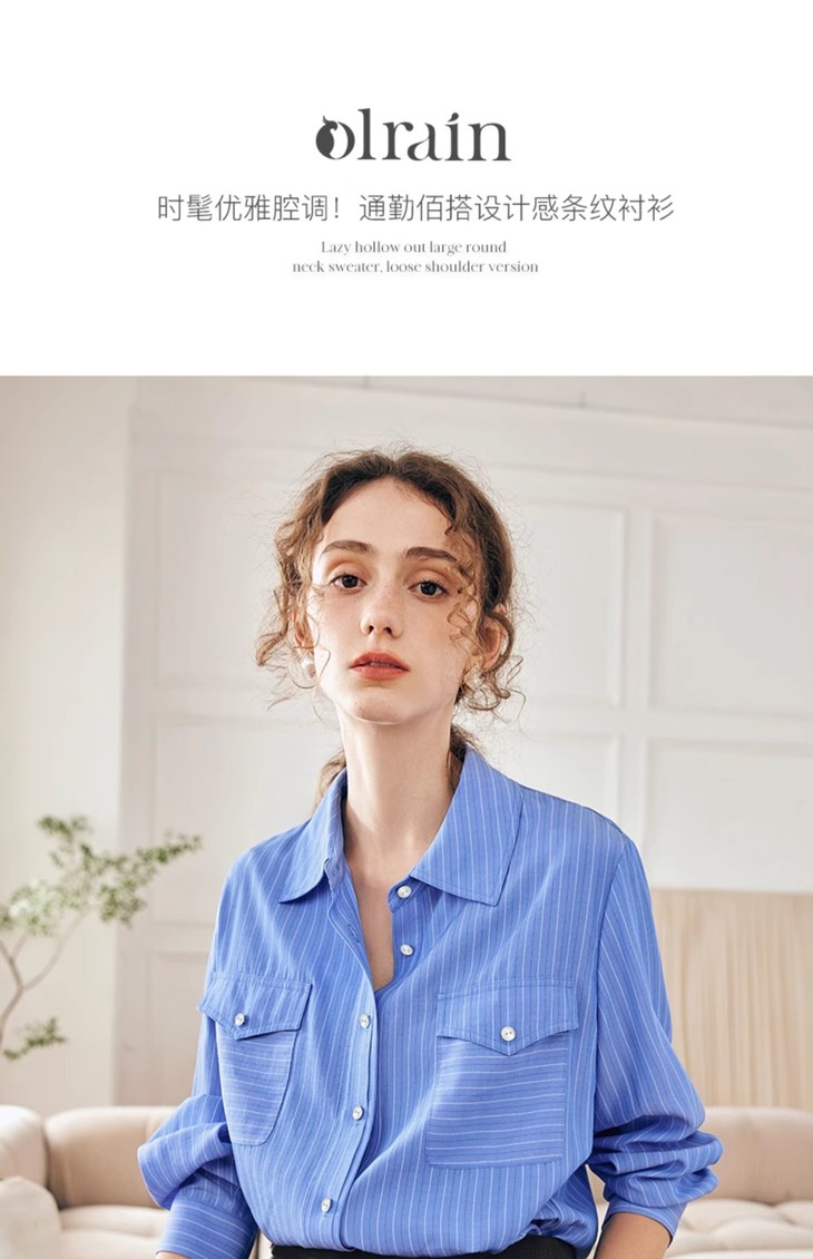OLrain欧芮儿法式蓝色条纹衬衫女春季2023年新款宽松洋气长袖衬衣