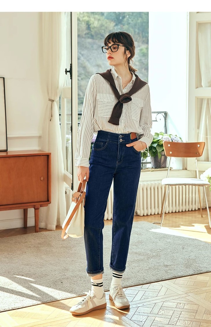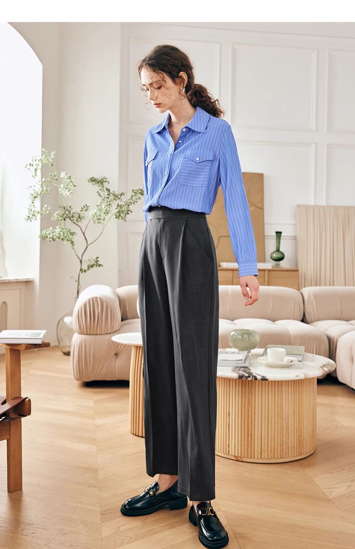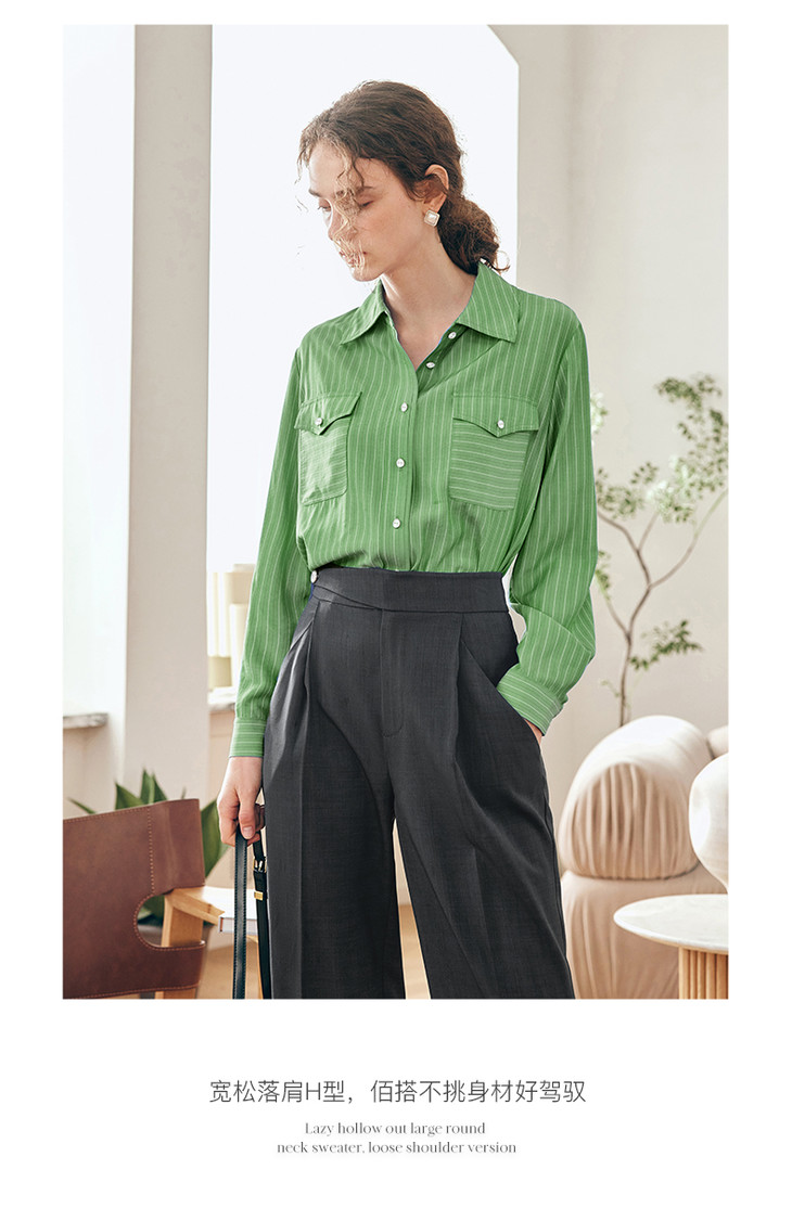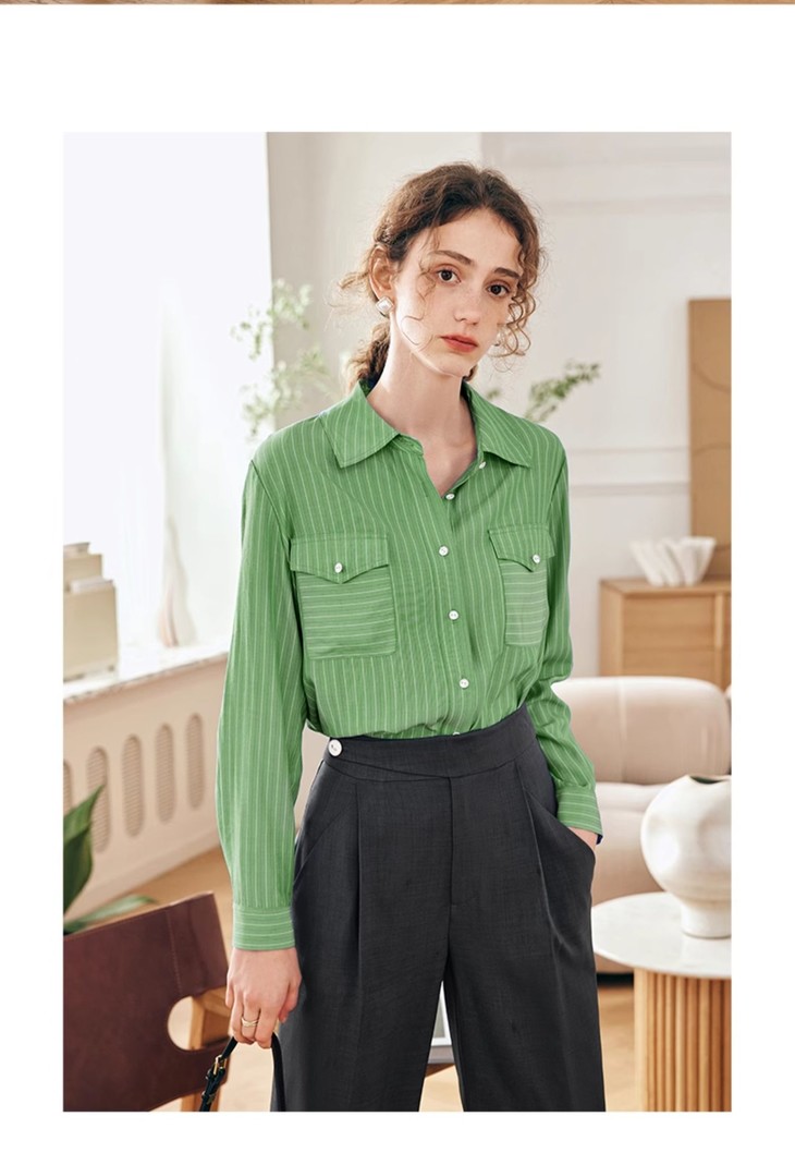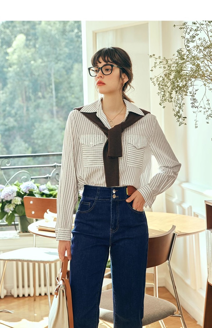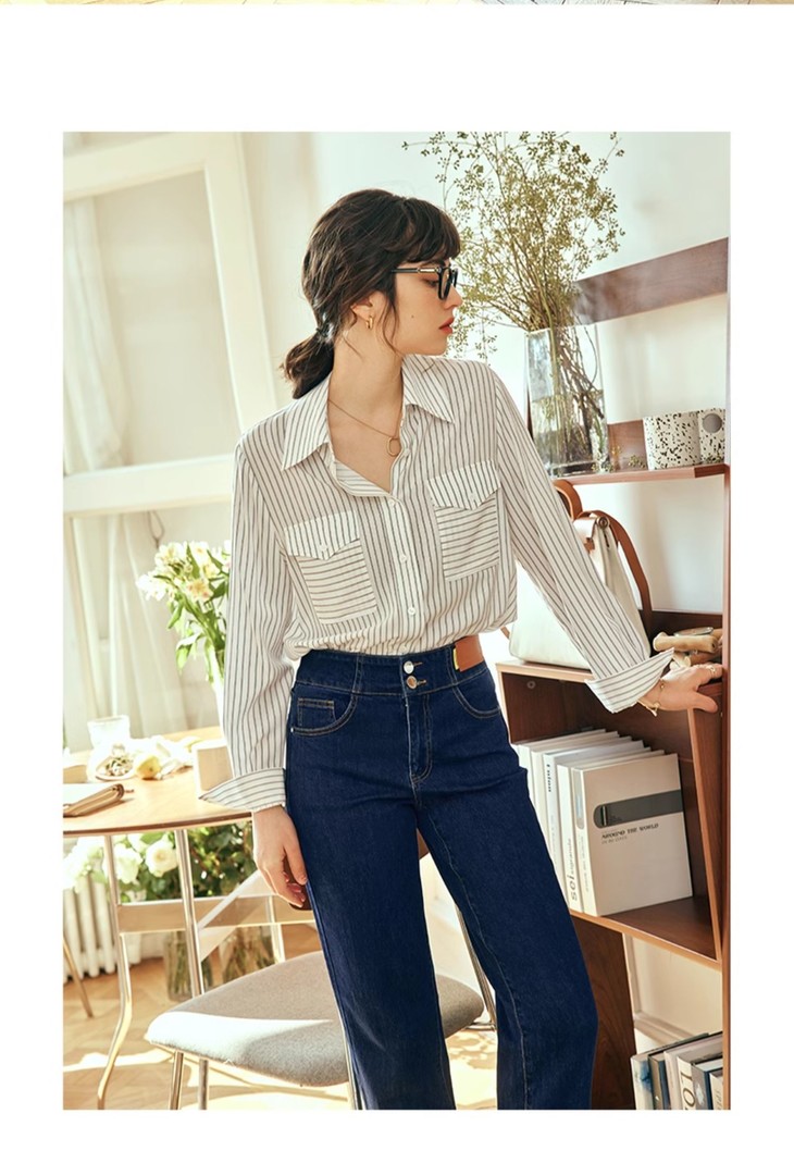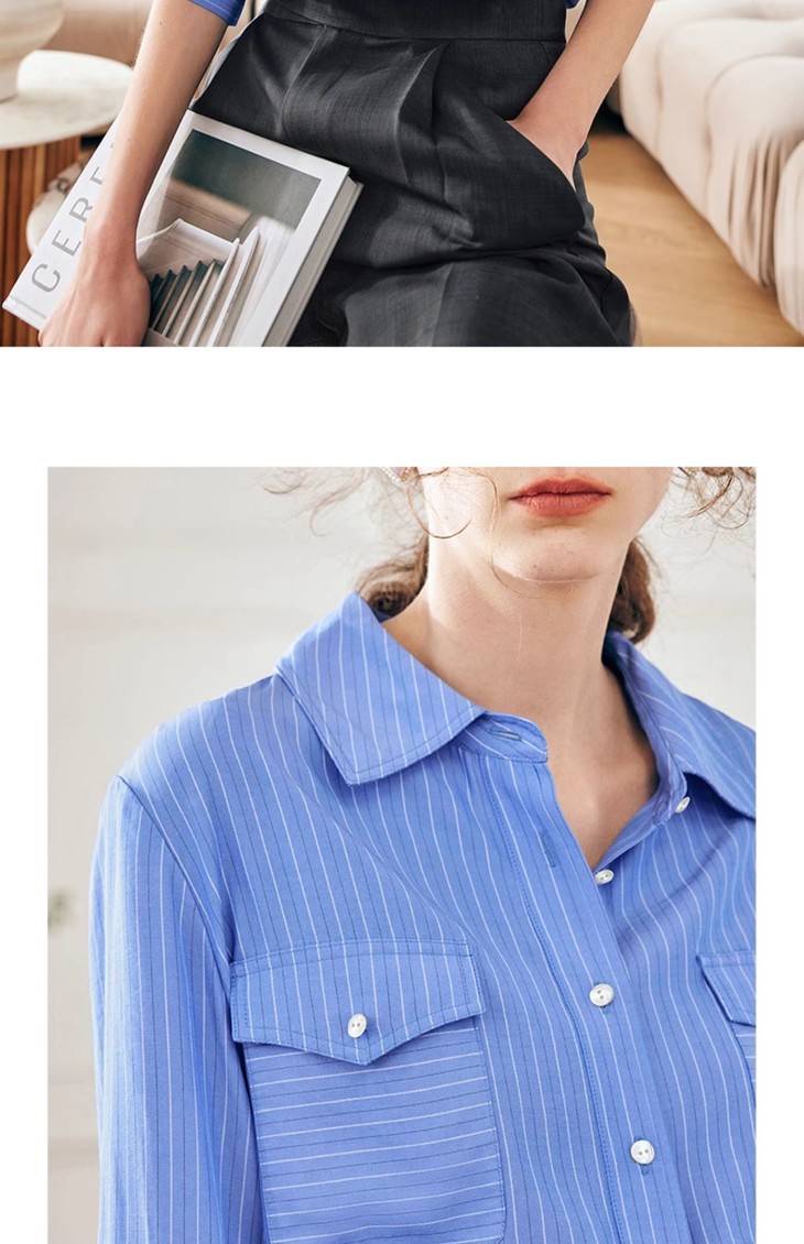 OLrain欧芮儿法式蓝色条纹衬衫女春季2023年新款宽松洋气长袖衬衣