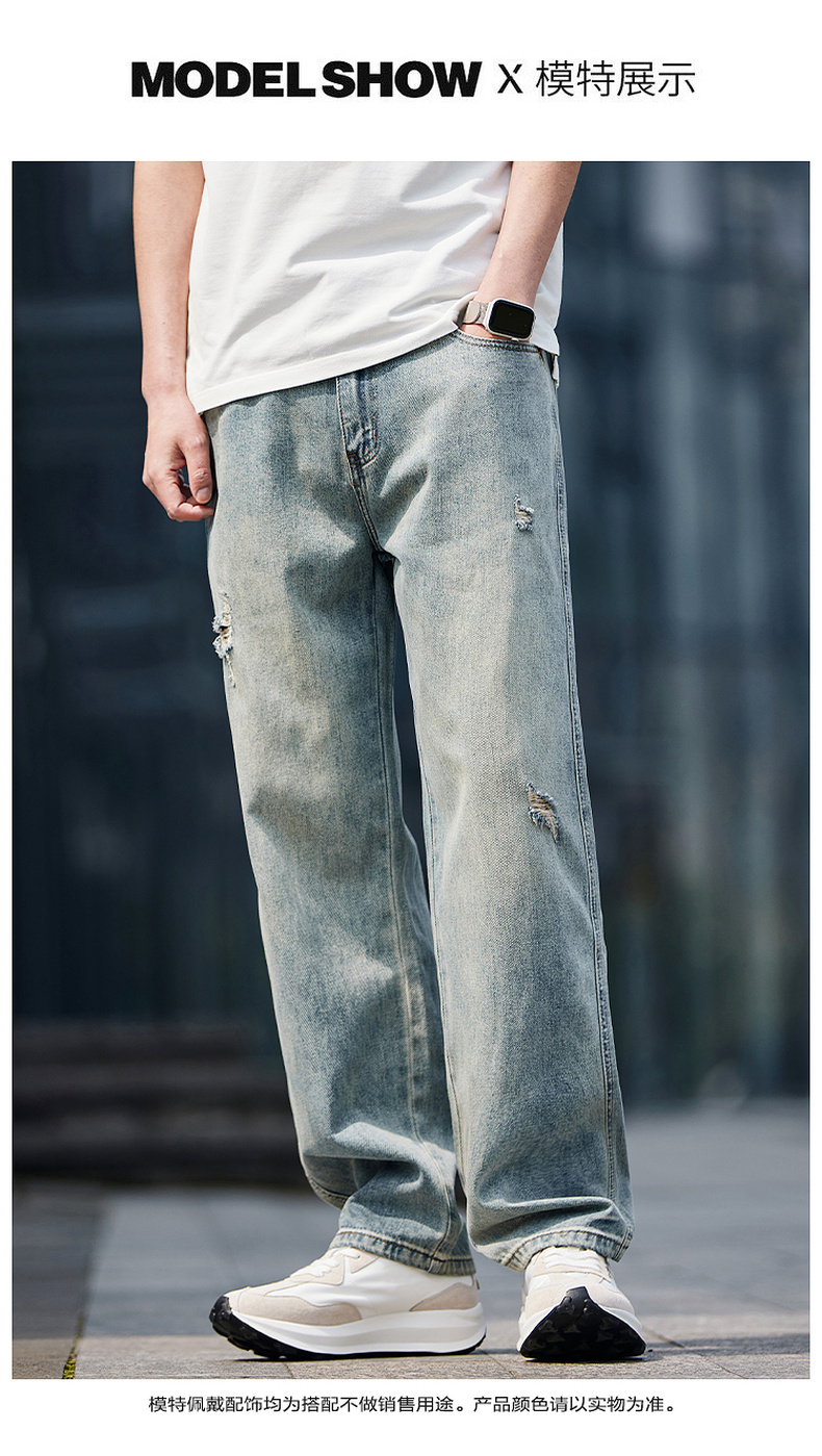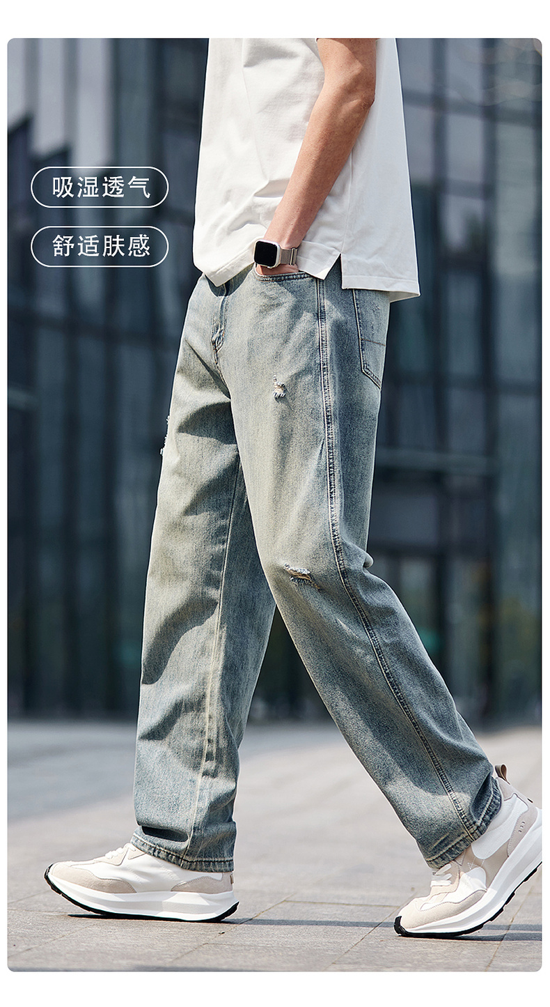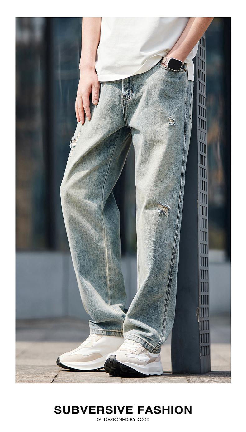 GXG男装秋季时尚潮流破洞款男士百搭牛仔休闲直筒长裤K&C