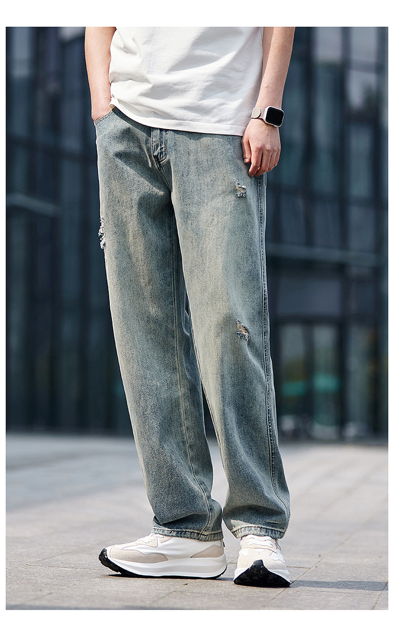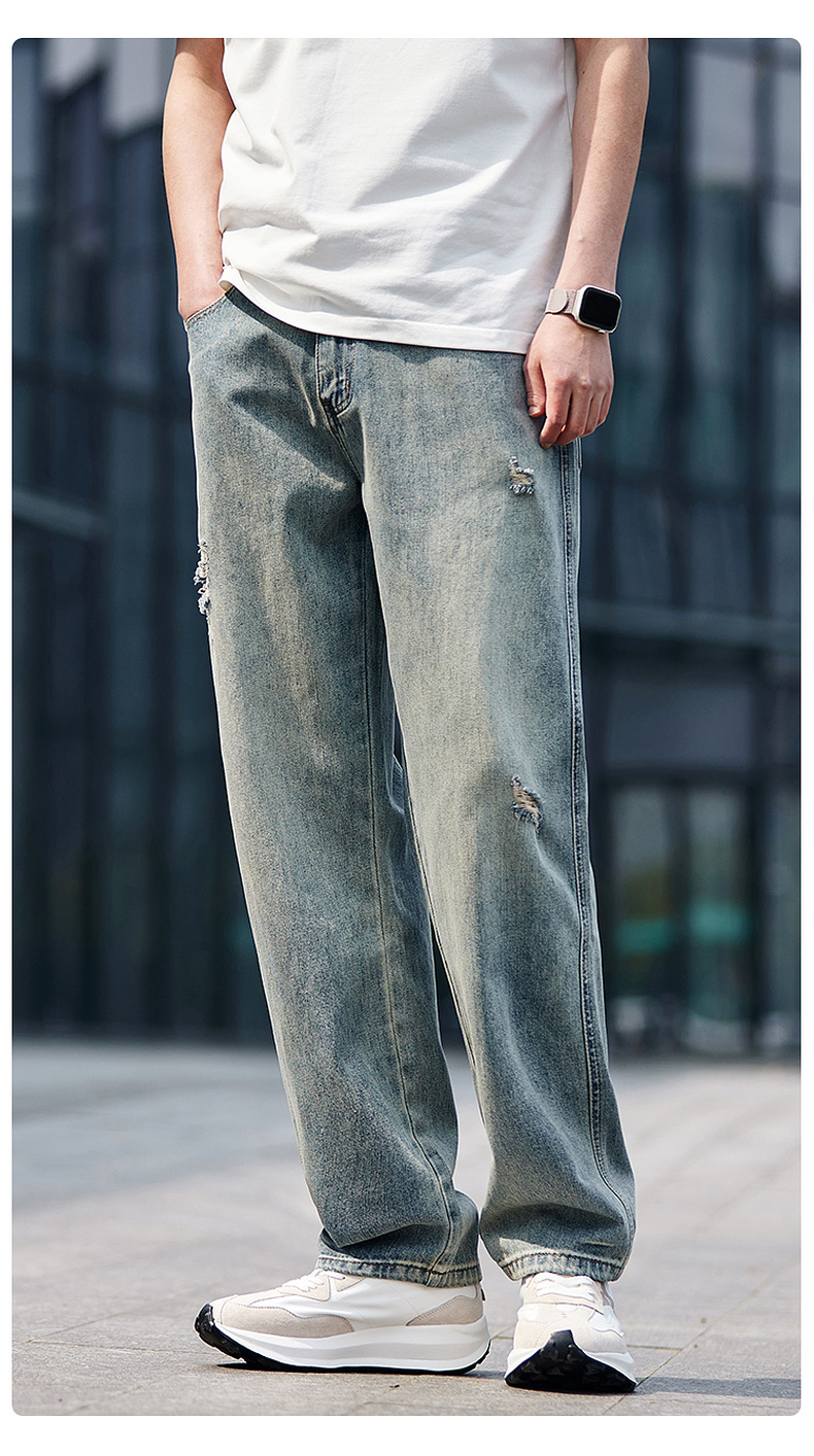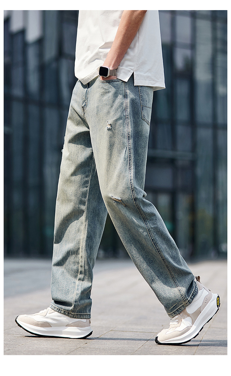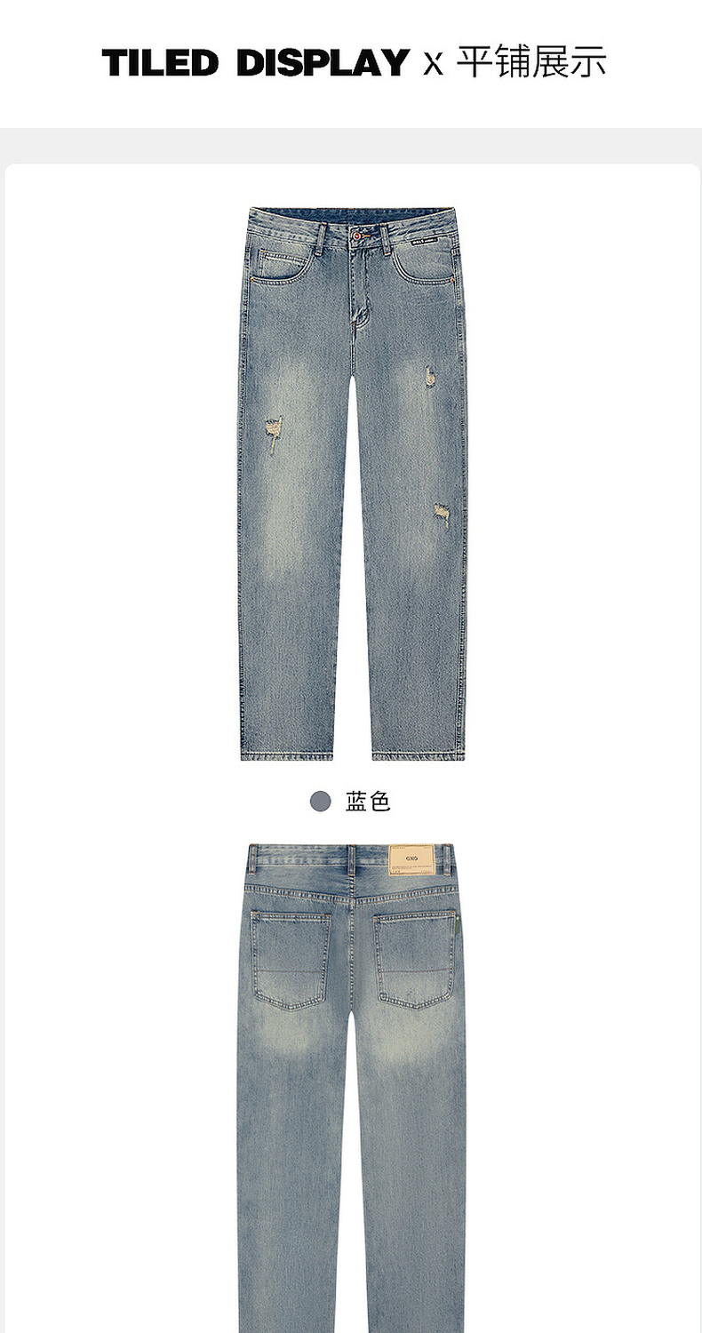 GXG男装秋季时尚潮流破洞款男士百搭牛仔休闲直筒长裤K&C