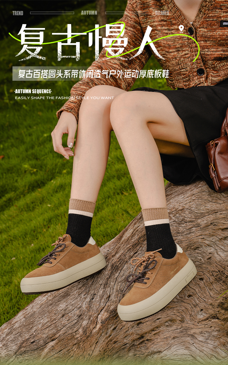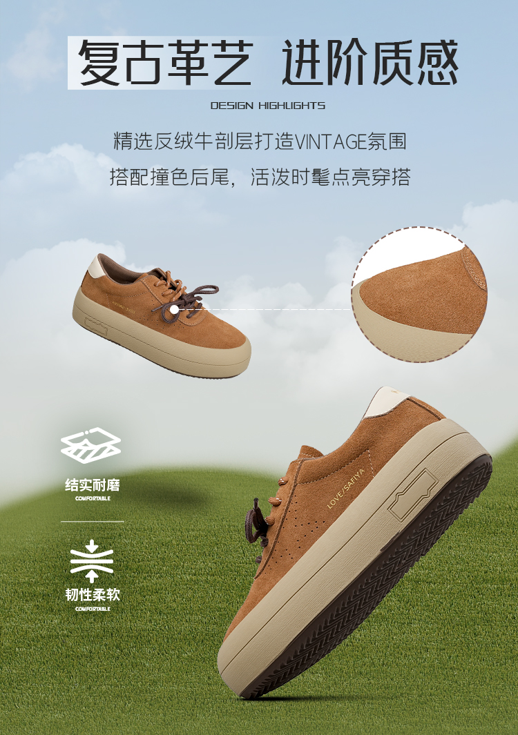 预售|Safiya/索菲娅2025复古百搭圆头细带休闲透气户外运动厚底板鞋SFD3112037