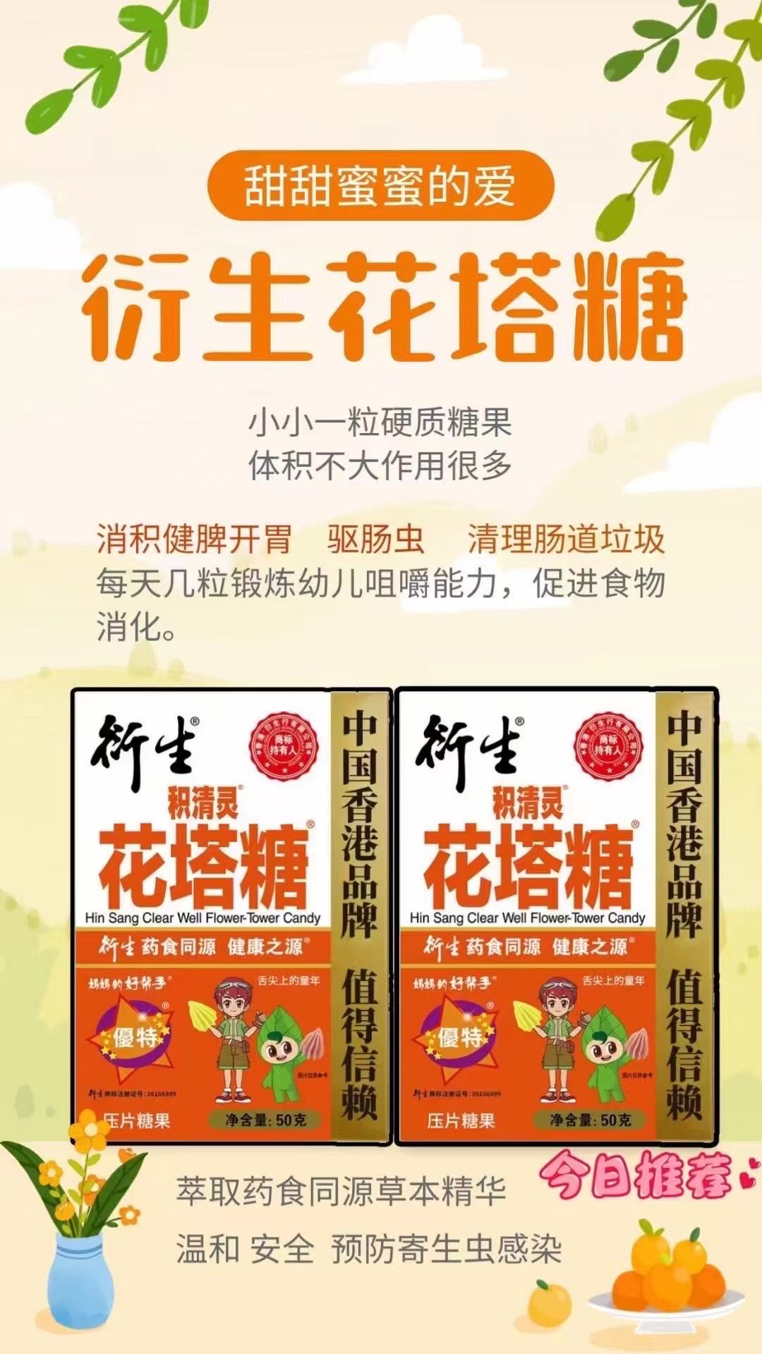 🌹衍生牌花塔糖,清肠,通便,驱虫,三效合一,有虫驱虫,无虫消积食,清肠胃,一举两得,宝宝肠胃清,吸收更顺畅👍👍👍👍