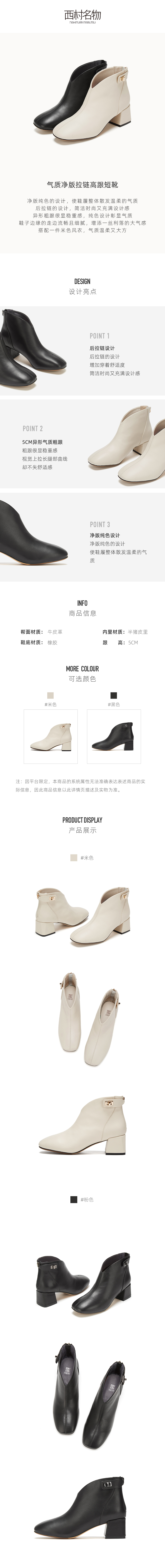 西村名物2020冬季新款气质净版拉链高跟短靴牛皮革中跟女靴X20DS40231