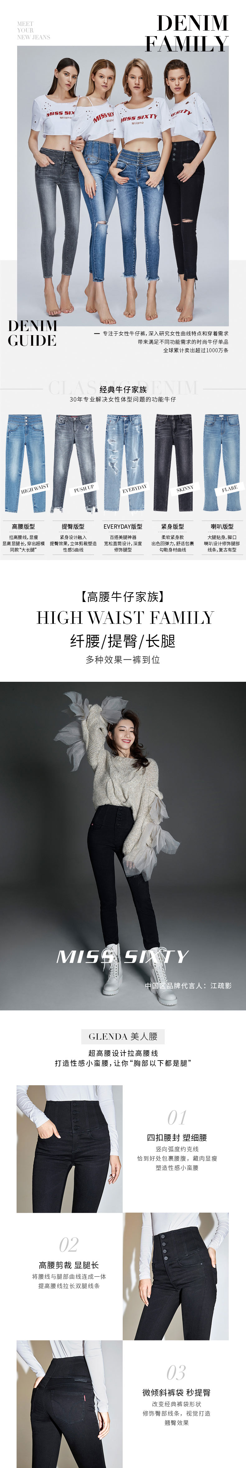 [江疏影同款]Miss Sixty2020冬季新款高腰紧身黑科技羊绒牛仔裤女604JJ2590800