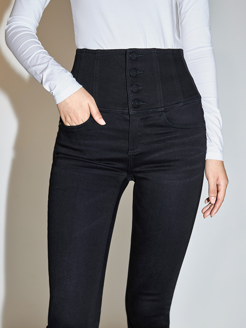 腰封式四扣超高腰,舒适包裹腰腹,提高腰线显腿长