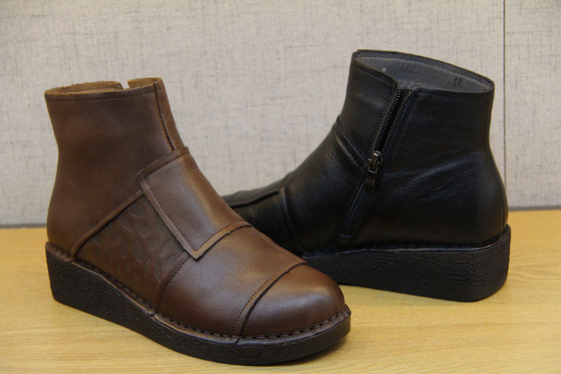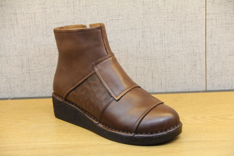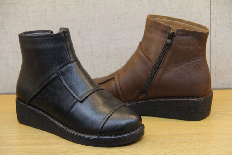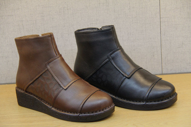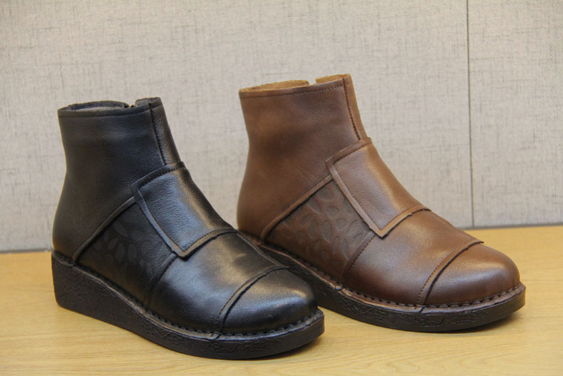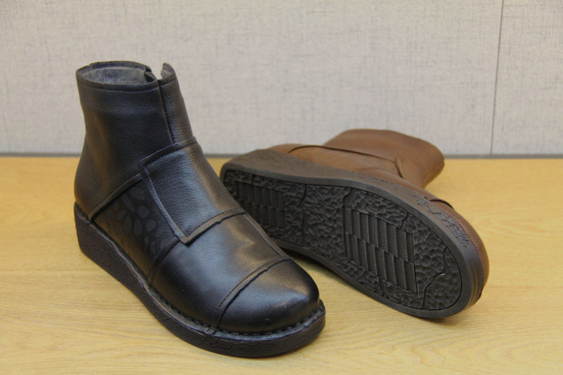 豪行冬款20492180棉鞋短靴子真皮软底加绒保暖舒适女皮鞋防滑底鞋