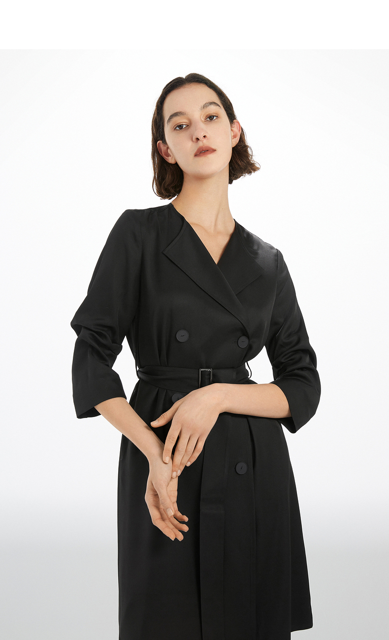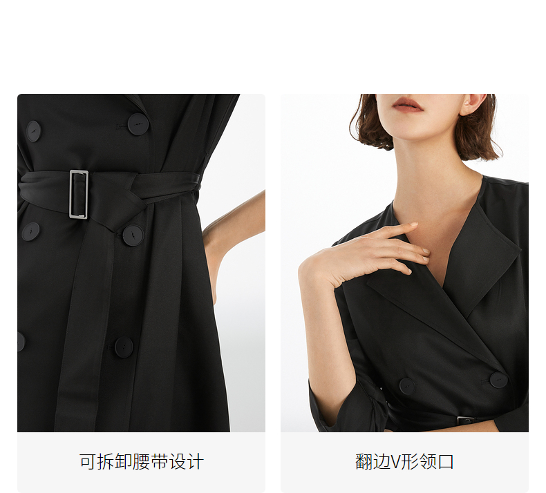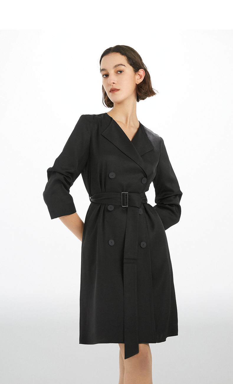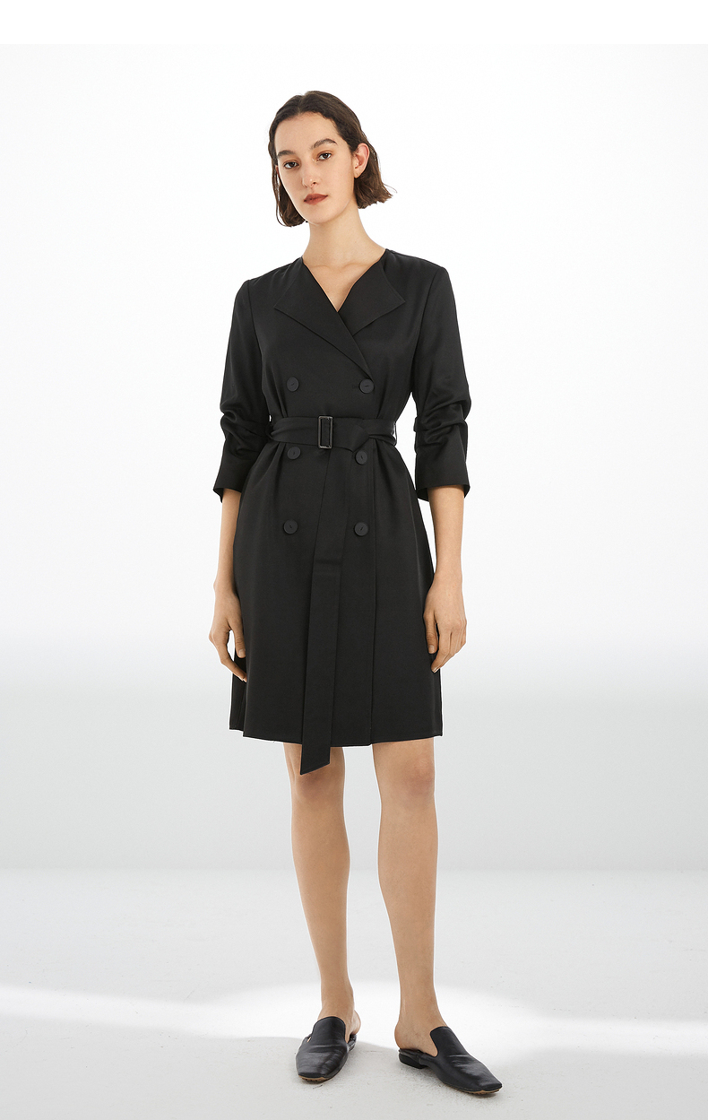 【商场同款】麦檬春复古简约双排扣V领连衣裙5C3190761