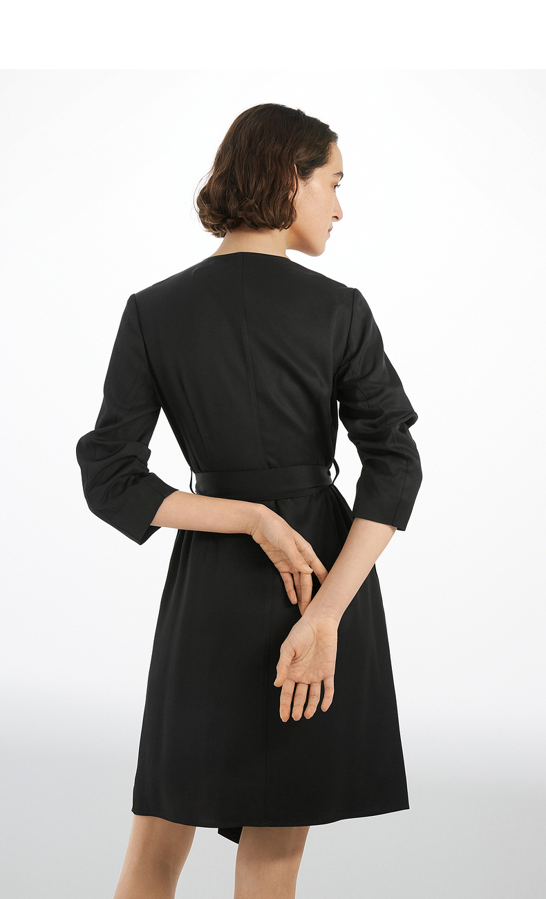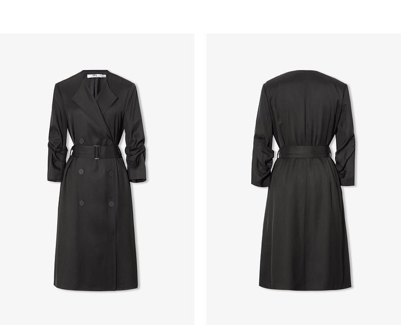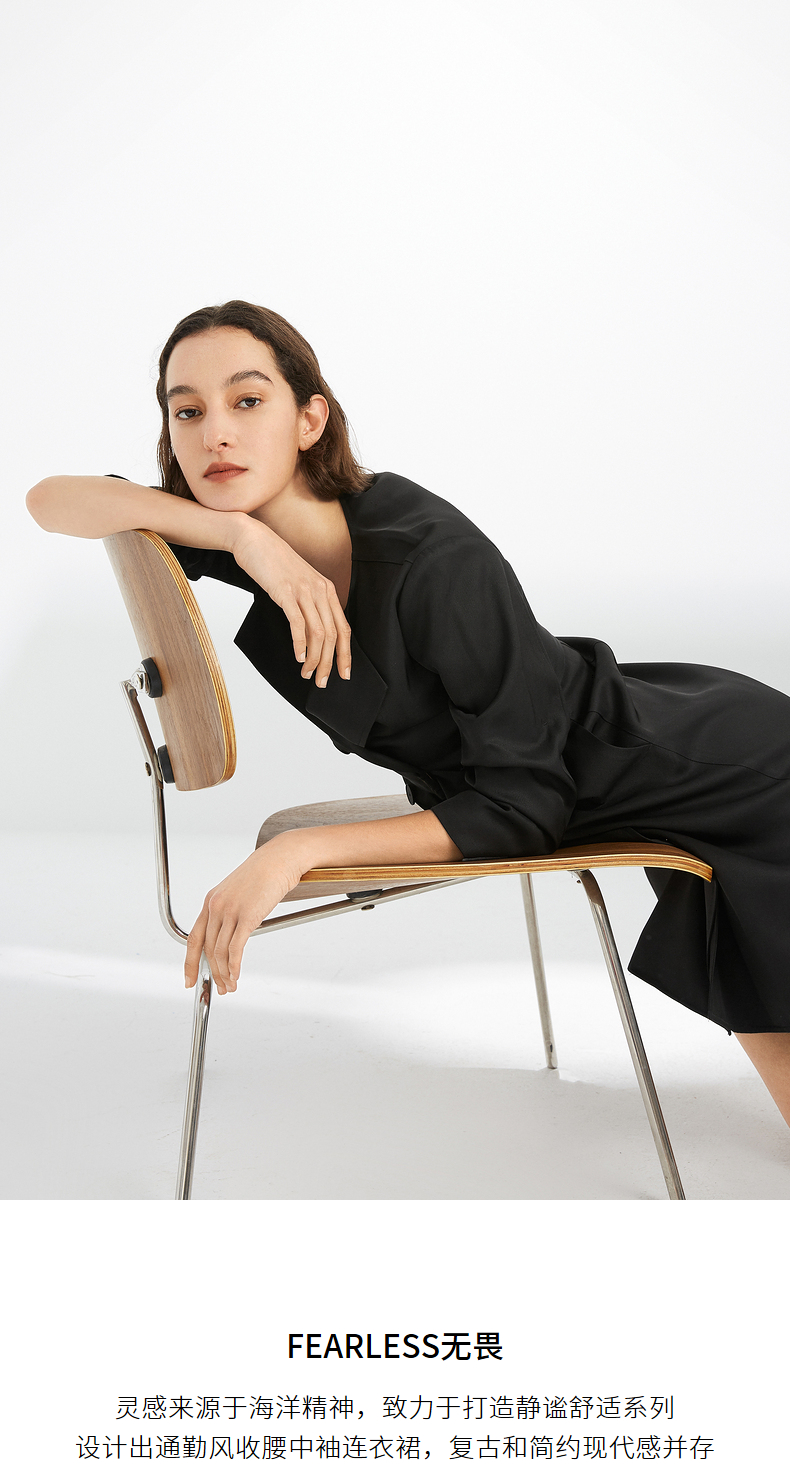 【商场同款】麦檬春复古简约双排扣V领连衣裙5C3190761
