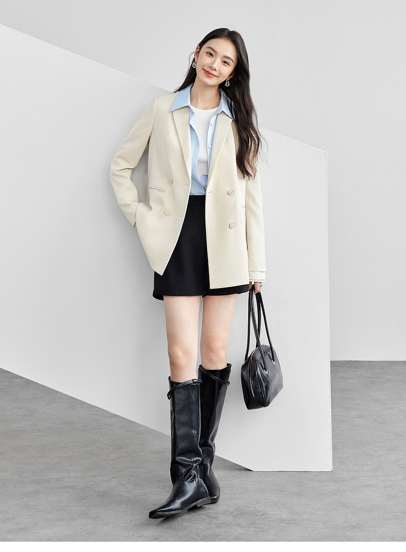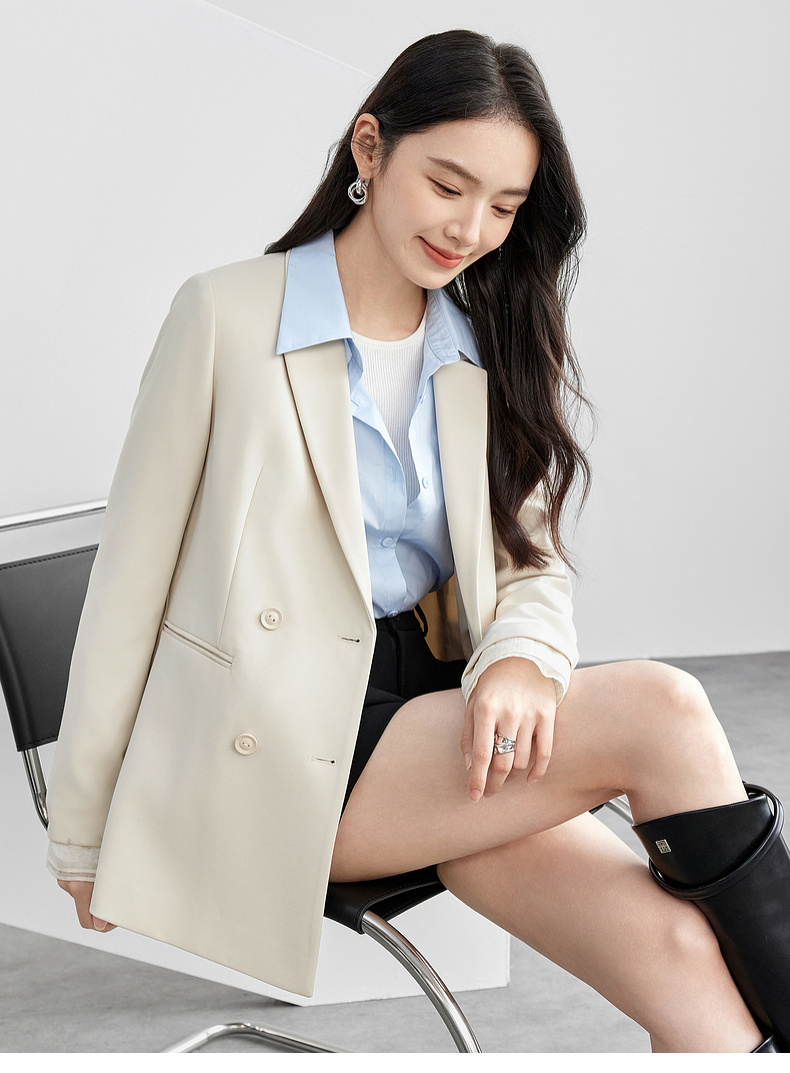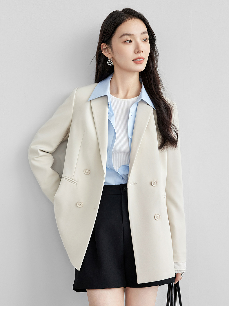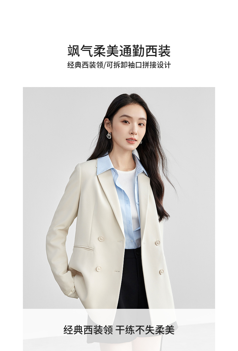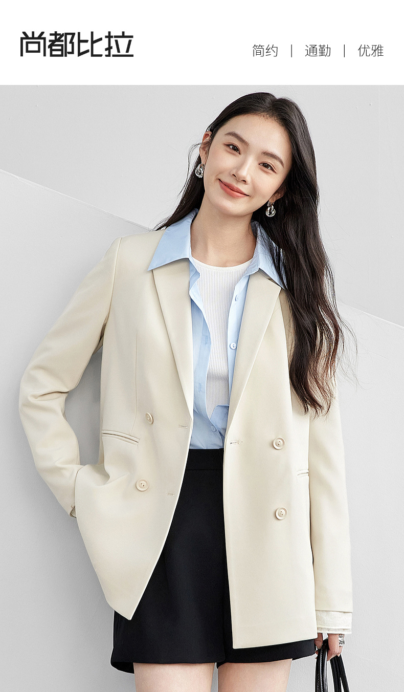 【尚都比拉】尚都比拉气质通勤西装领双排扣装饰唇袋有肩垫休闲西装外套-151X57759