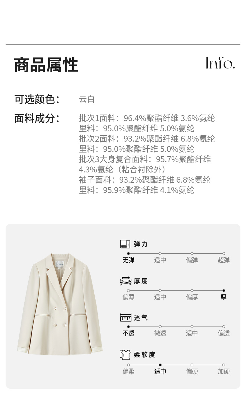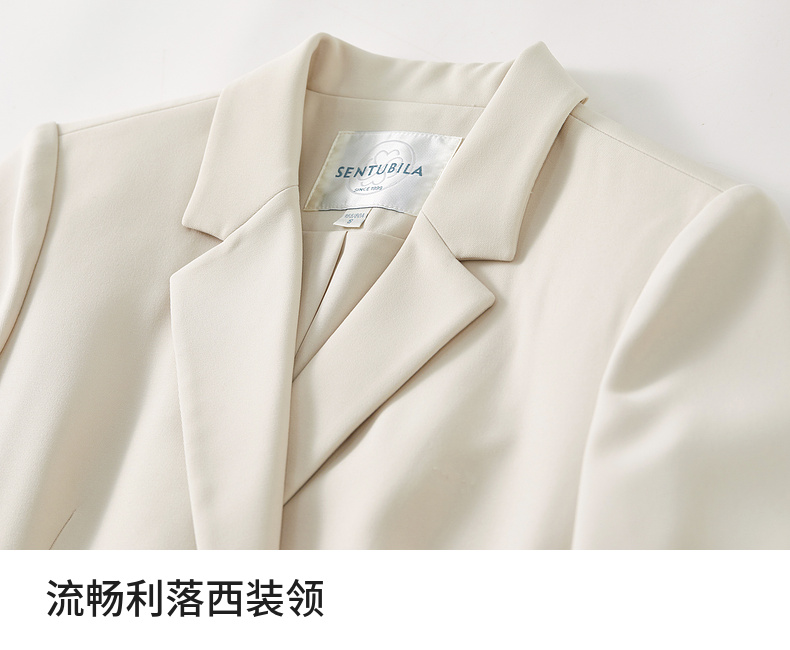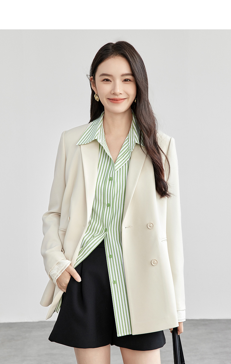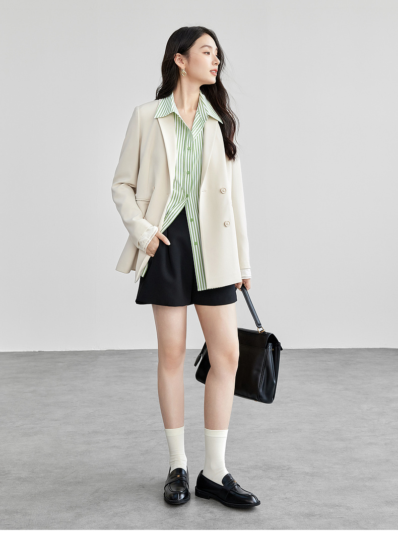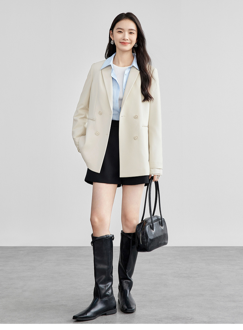 【尚都比拉】尚都比拉气质通勤西装领双排扣装饰唇袋有肩垫休闲西装外套-151X57759