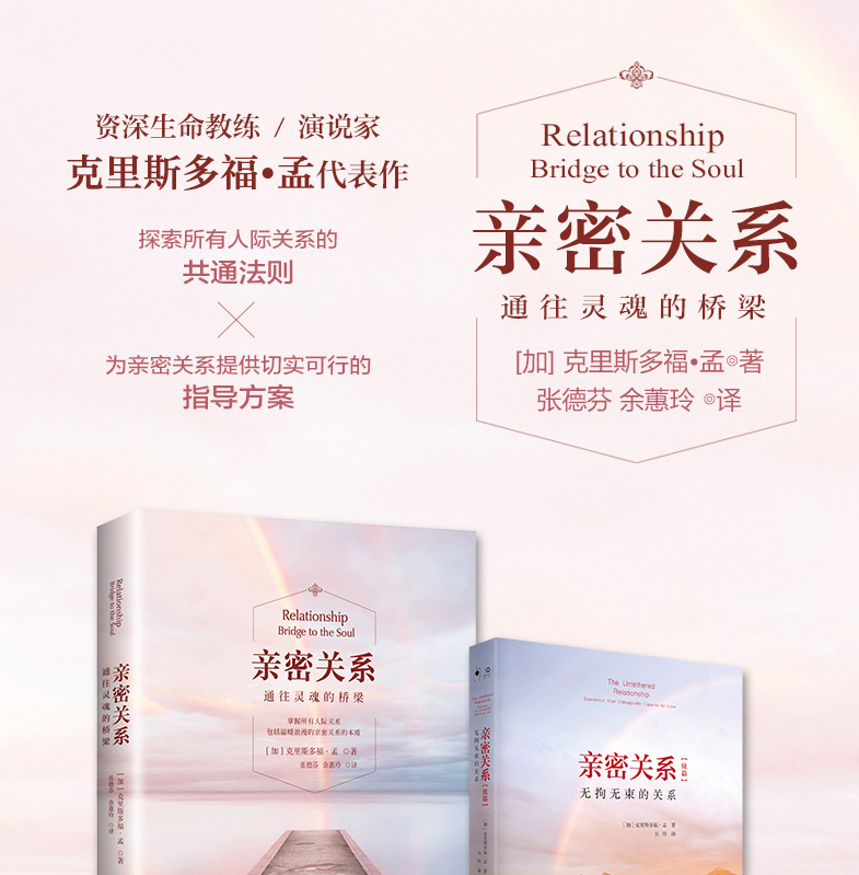 【心如健】樊登读书会5册】亲密关系 樊登张德芬推荐书 通往灵魂桥梁克里斯多福孟心灵修养婚恋与两性读物社会恋爱心理学入门教程书心灵修养
