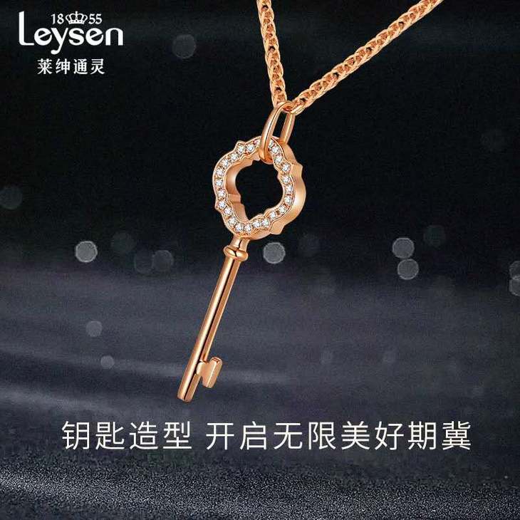 南1莱绅通灵珠宝钻石吊坠18K金钻石吊坠项链女 王室花园许愿池钥匙