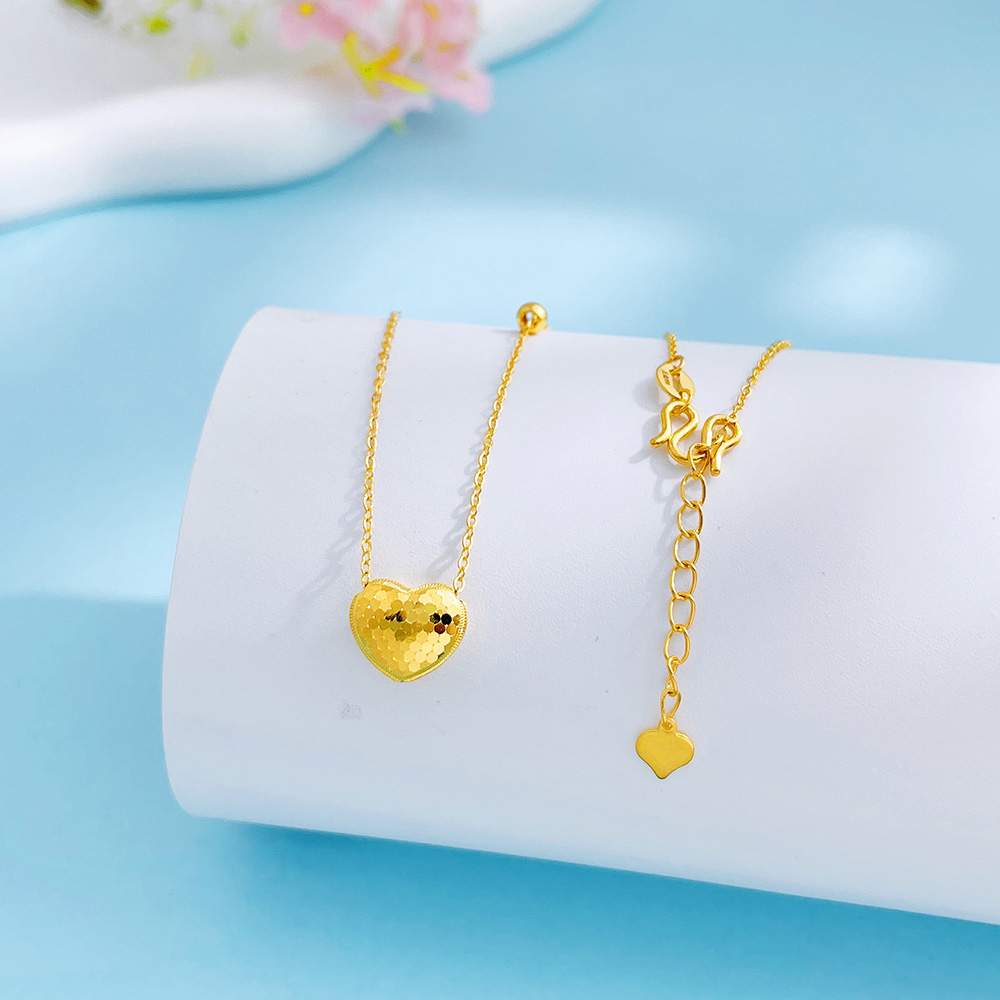 【限时克减150元】足金999 #怦然心动 5G黄金空心鱼鳞爱心心形调节套链(AG5GTL00525)(预售产品下单后不退款不退货不换货不补差价)