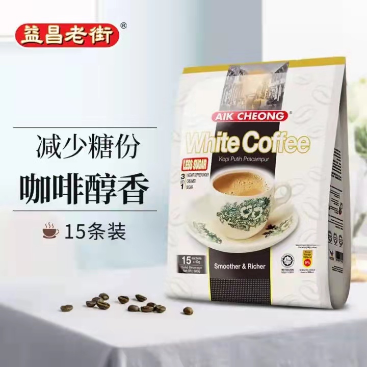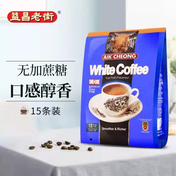 马来西亚益昌老街咖啡系列二合一白咖啡450g/白咖啡三合一600g/白咖啡三合一(减少糖)600g 香浓醇厚 不含香精 025364/025365/025366