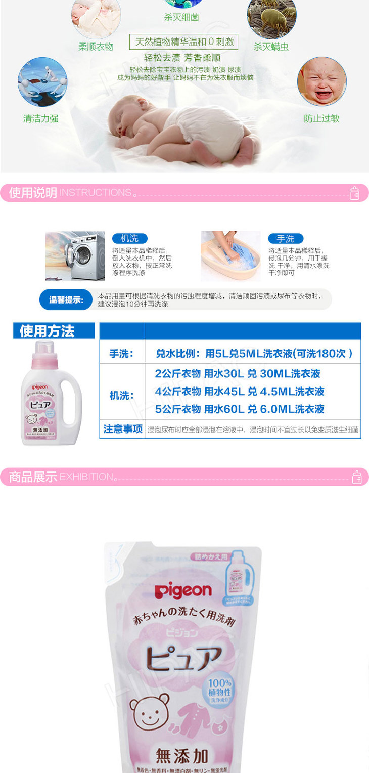 【一般贸易】日本贝亲 婴儿专用衣物洗衣液 替换装720ML