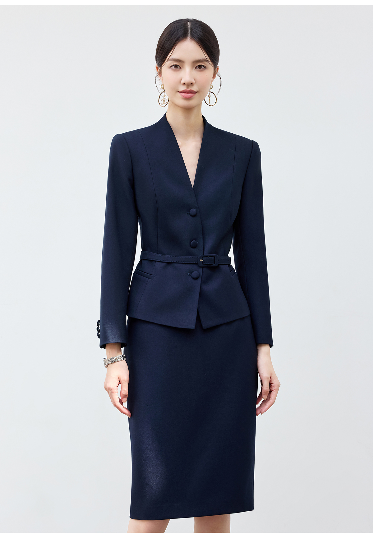 IWY/高级感藏青色西装套裙女气质酒店经理前台工作服商务职业装25CS8120