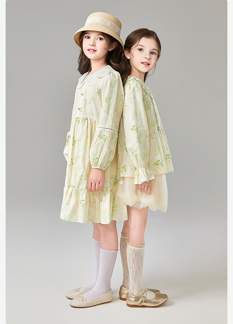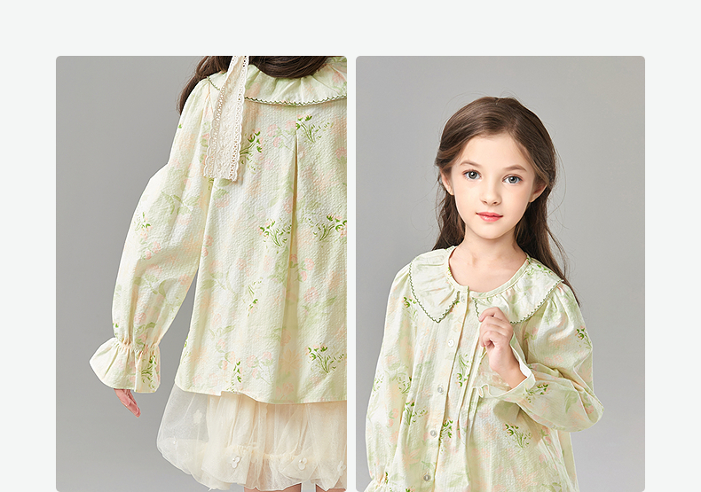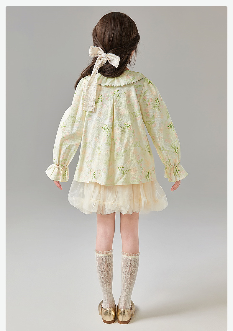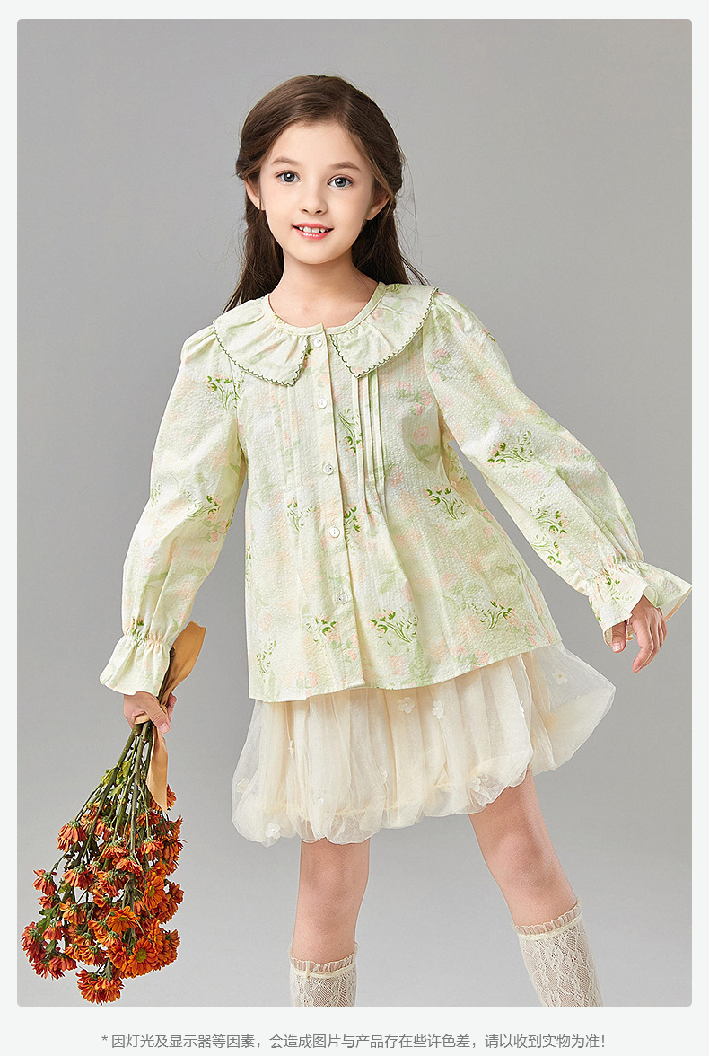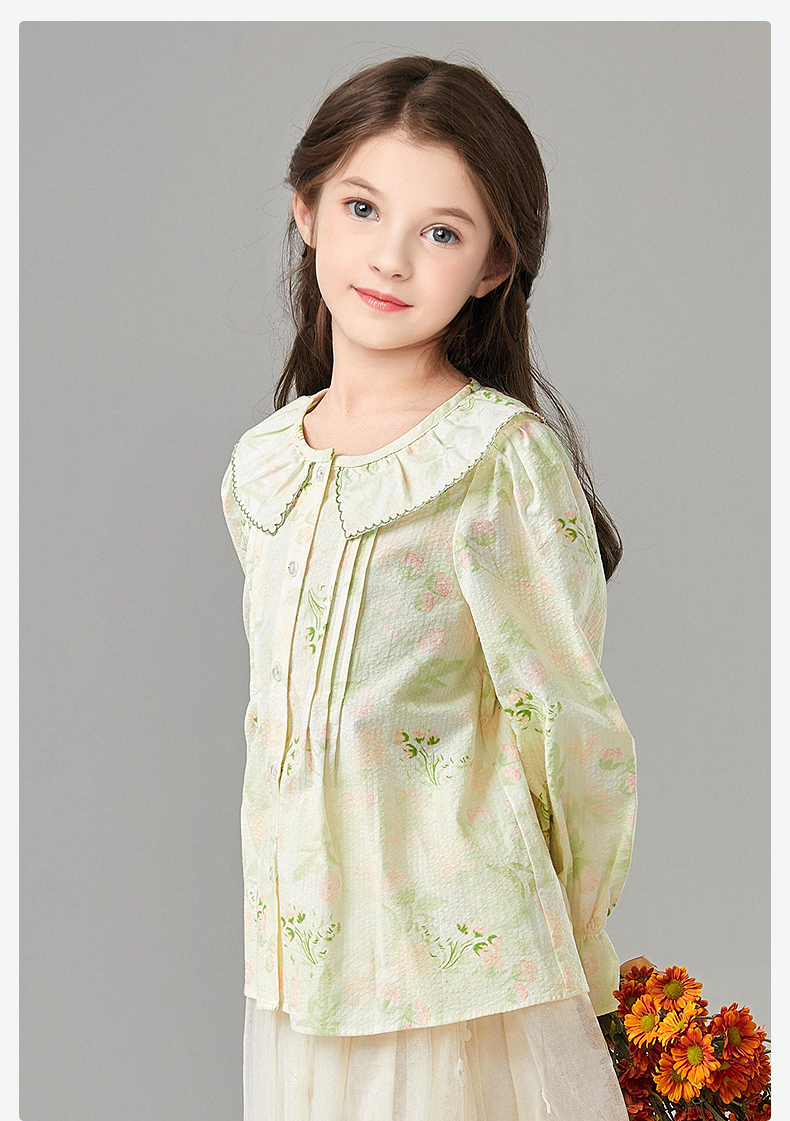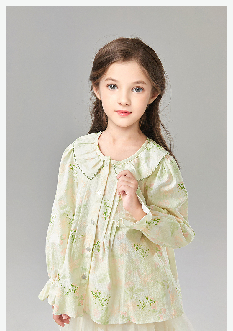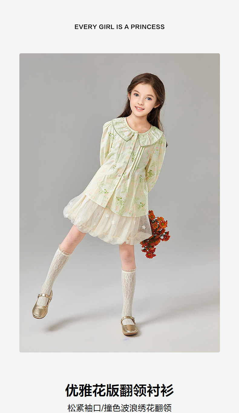 笛莎Deesha 童装女童衬衫2025春新款女童优雅花版翻领衬衫