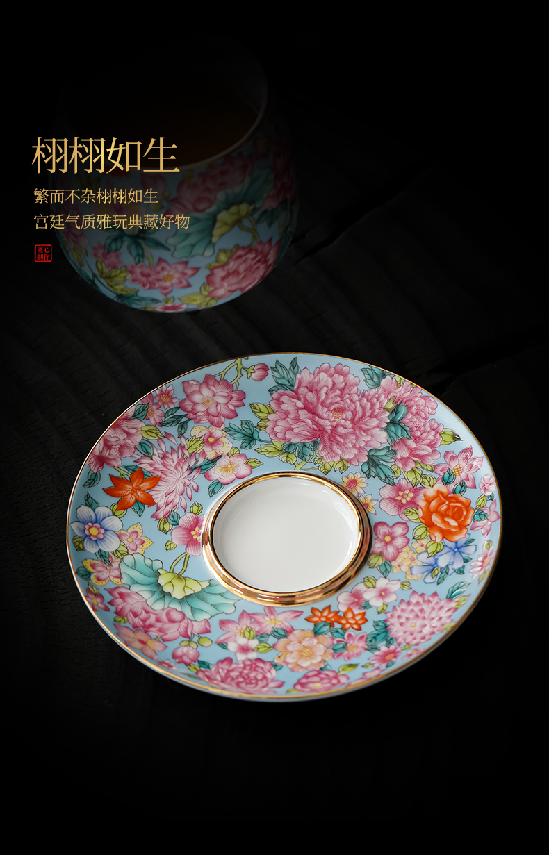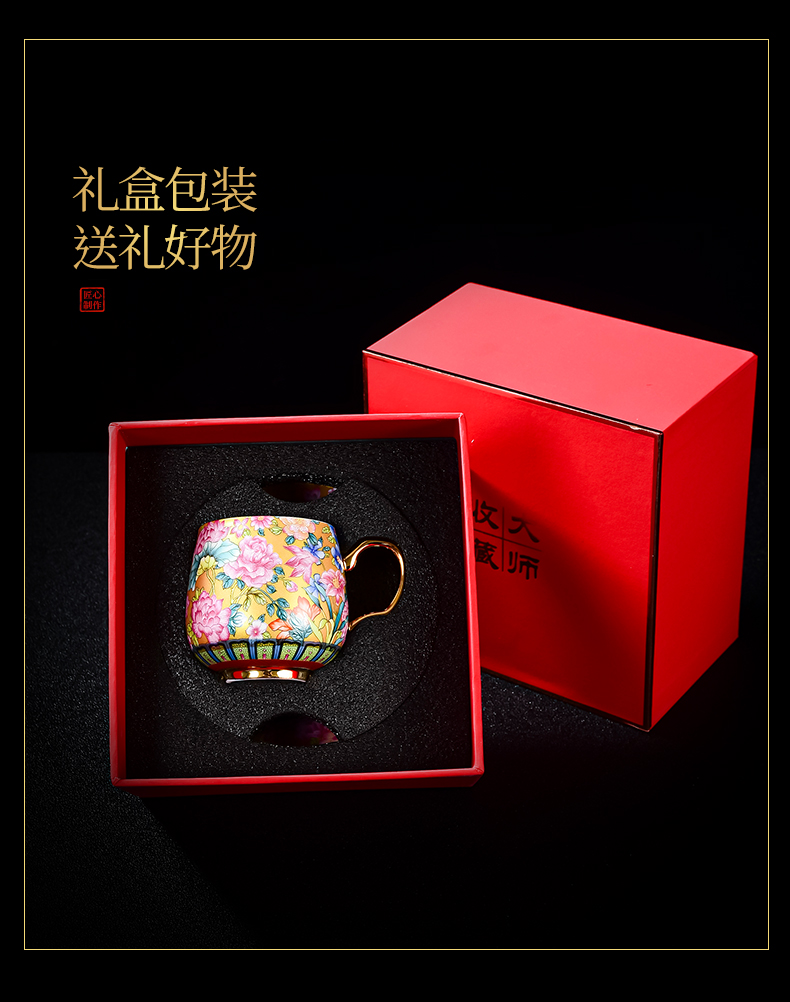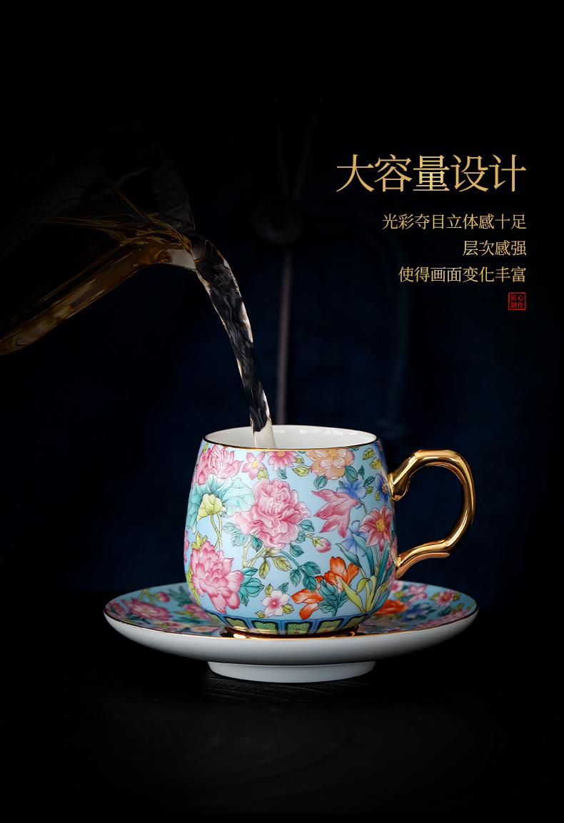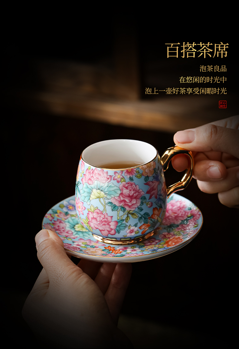 永利汇陶瓷有耳喝茶杯带杯托茶杯六只装咖啡杯具茶具套装泡茶杯