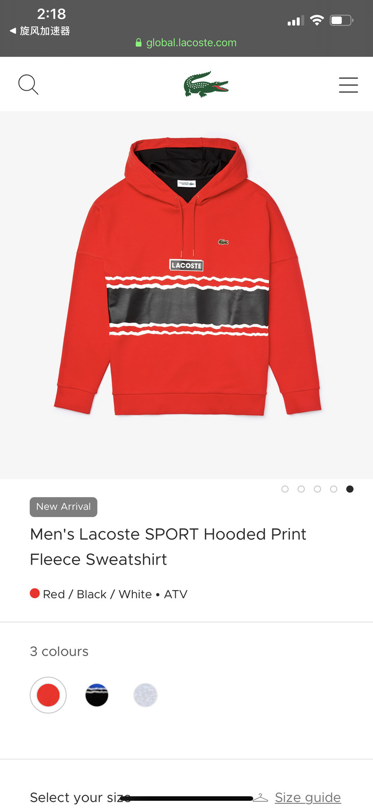属于春天的绚丽!法鳄Lacoste 2020春夏新款连帽卫衣。国外已上,国专还没上,估计快了。国专售价应该在1300-1400元。落肩袖修身版型,胸口大面积波浪纹刷胶,轻松而又时尚,回头率很高。