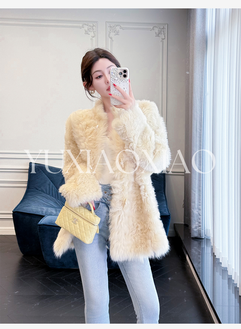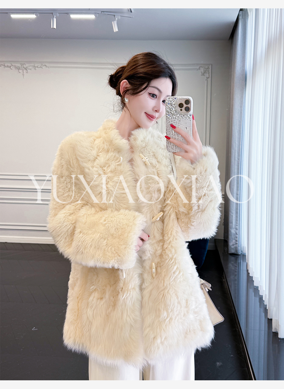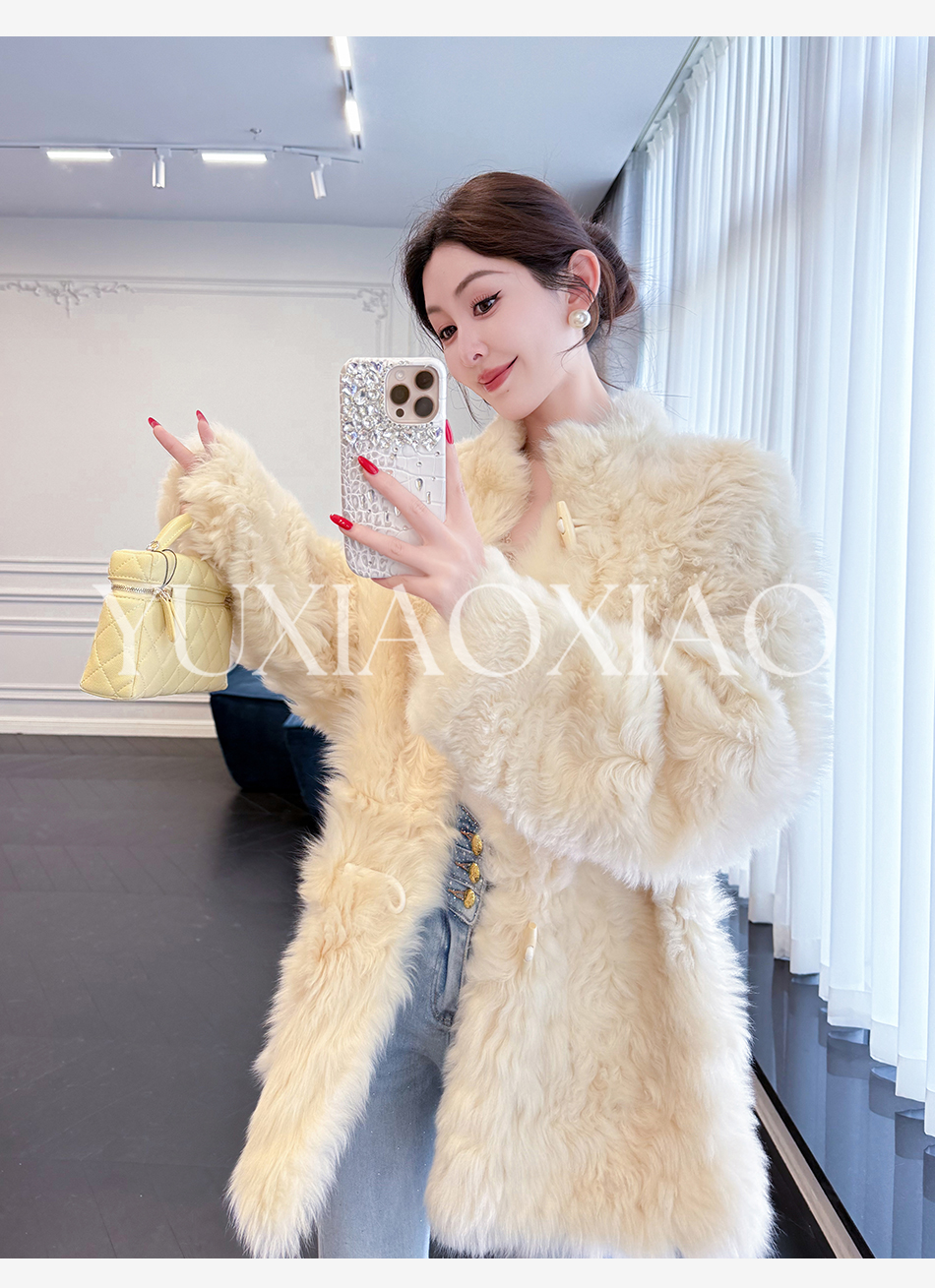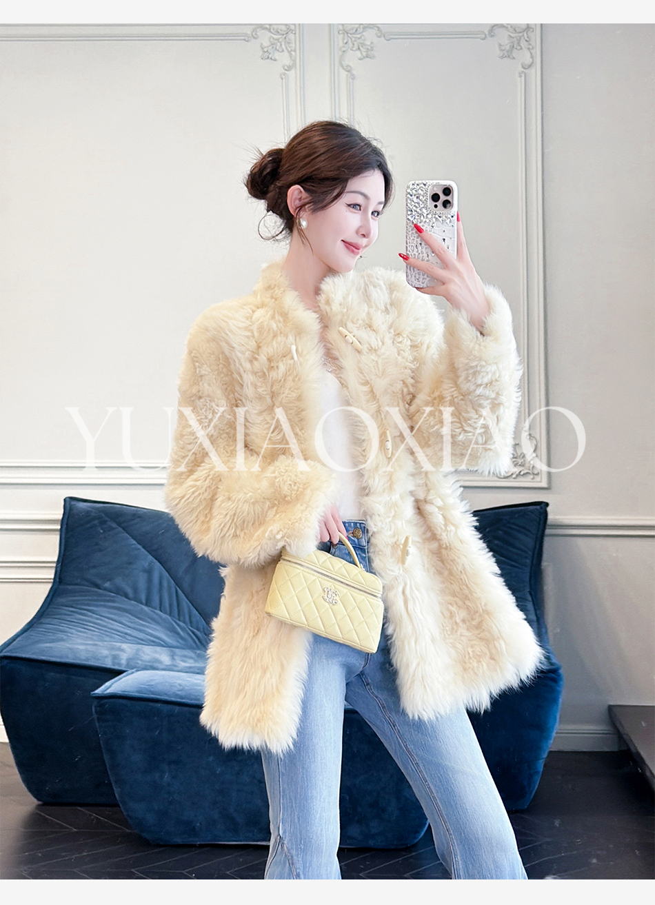 余潇潇【暮雪时光】高级减龄托斯卡纳皮毛一体时髦宽松立领外套