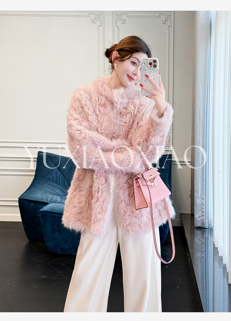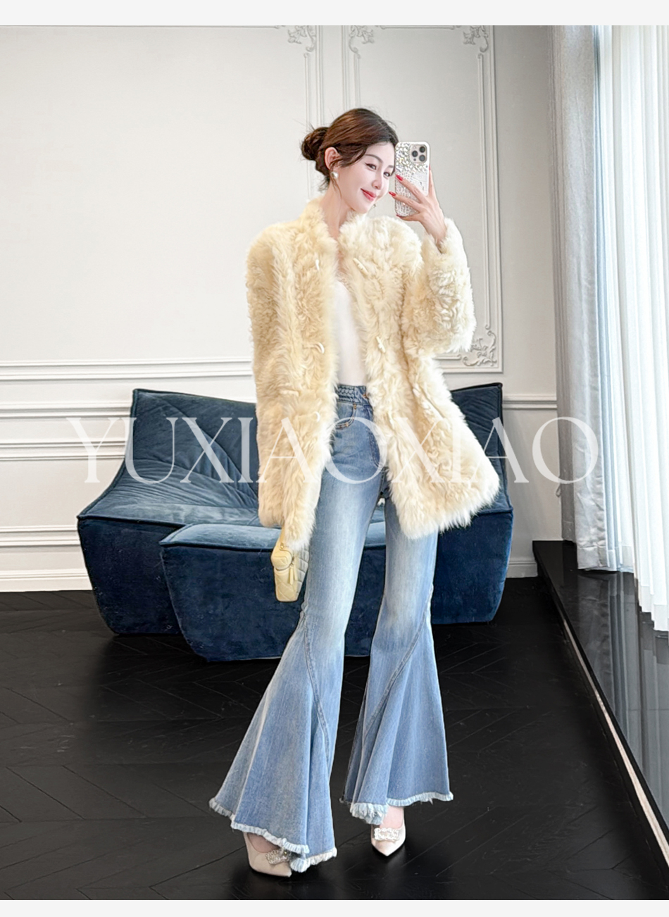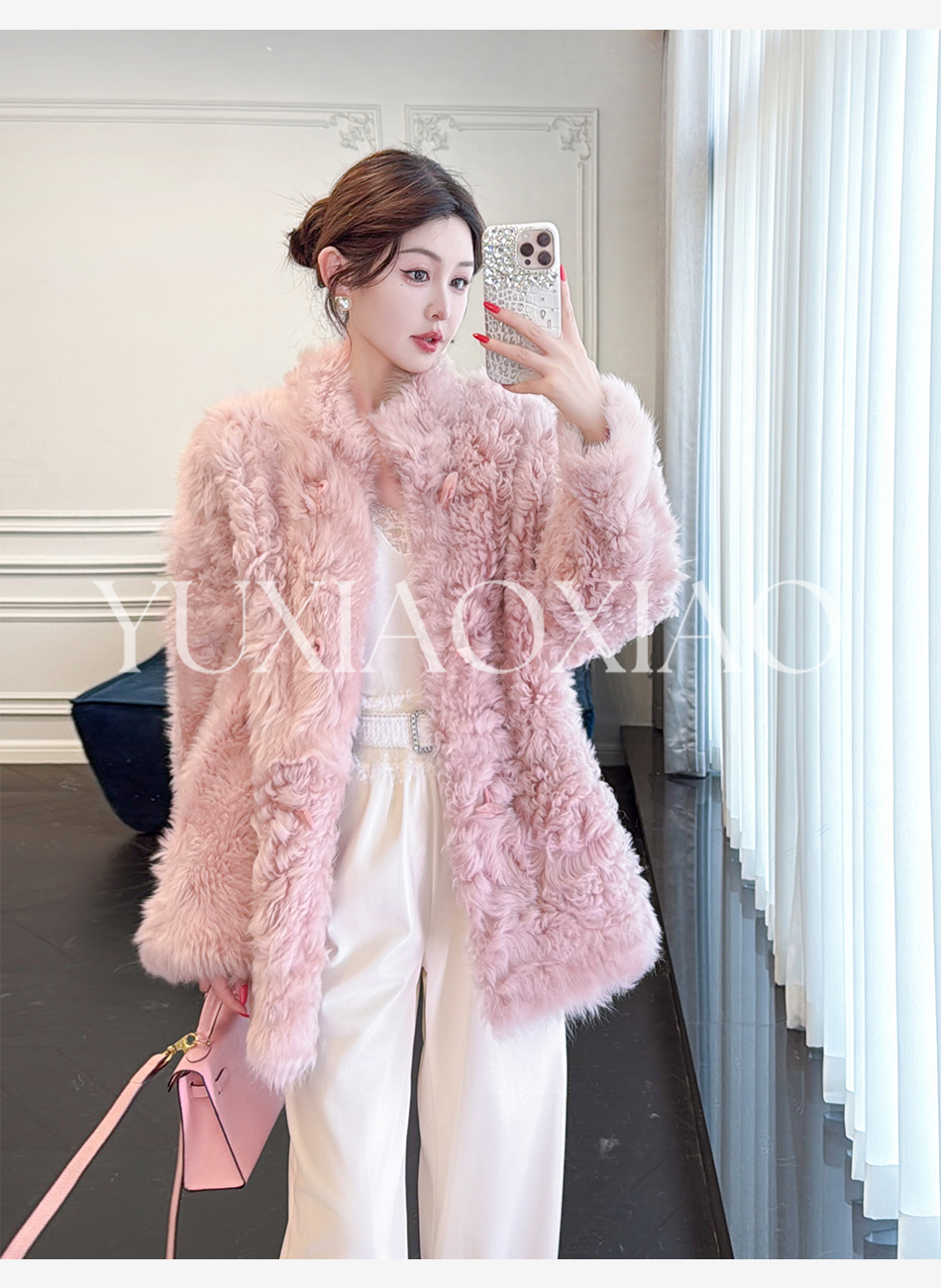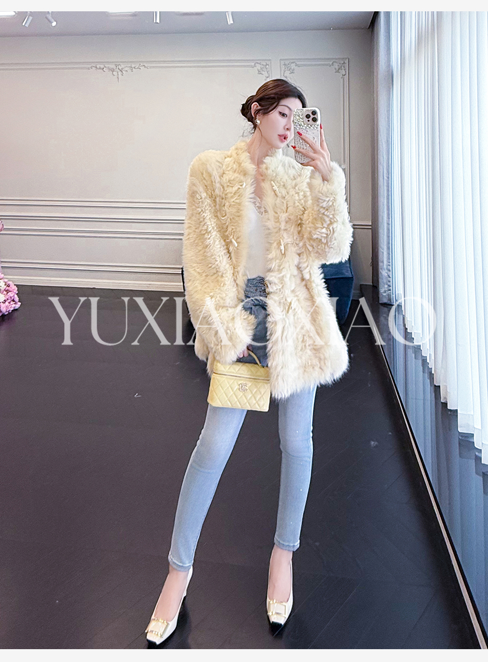 余潇潇【暮雪时光】高级减龄托斯卡纳皮毛一体时髦宽松立领外套